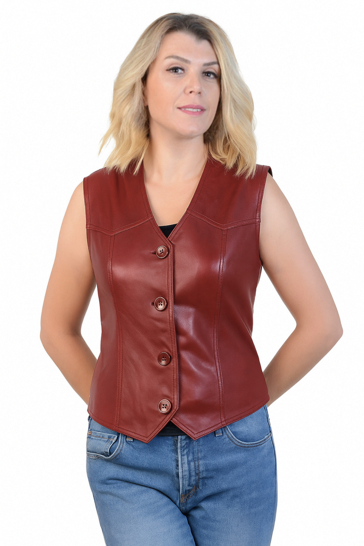 Derije Darla Hakiki Deri Kadın Kırmızı Yelek Derije Darla Hakiki Deri Kadın Kırmızı Yelek 0741 3XL