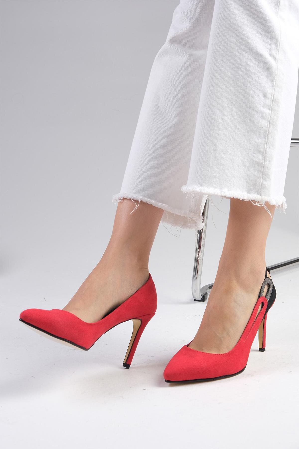 Elvira Kırmızı Süet Renk Kombinasyonlu Kadın Stiletto Topuklu Ayakkabı Elvira Kırmızı Süet Renk Kombinasyonlu Kadın Stiletto Topuklu Ayakkabı 02190BLS 42