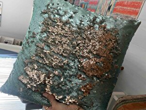 Pul Payet Kırlent Kılıfı - (turkuaz-gümüş) Pul Payet Kırlent Kılıfı - (turkuaz-gümüş) YLMZ1003 43 x 43