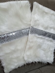Peluş Dikdörtgen Şeritli Kırlent Kılıfı - (beyaz-gümüş) Peluş Dikdörtgen Şeritli Kırlent Kılıfı - (beyaz-gümüş) YLMZ1002 50 x 30