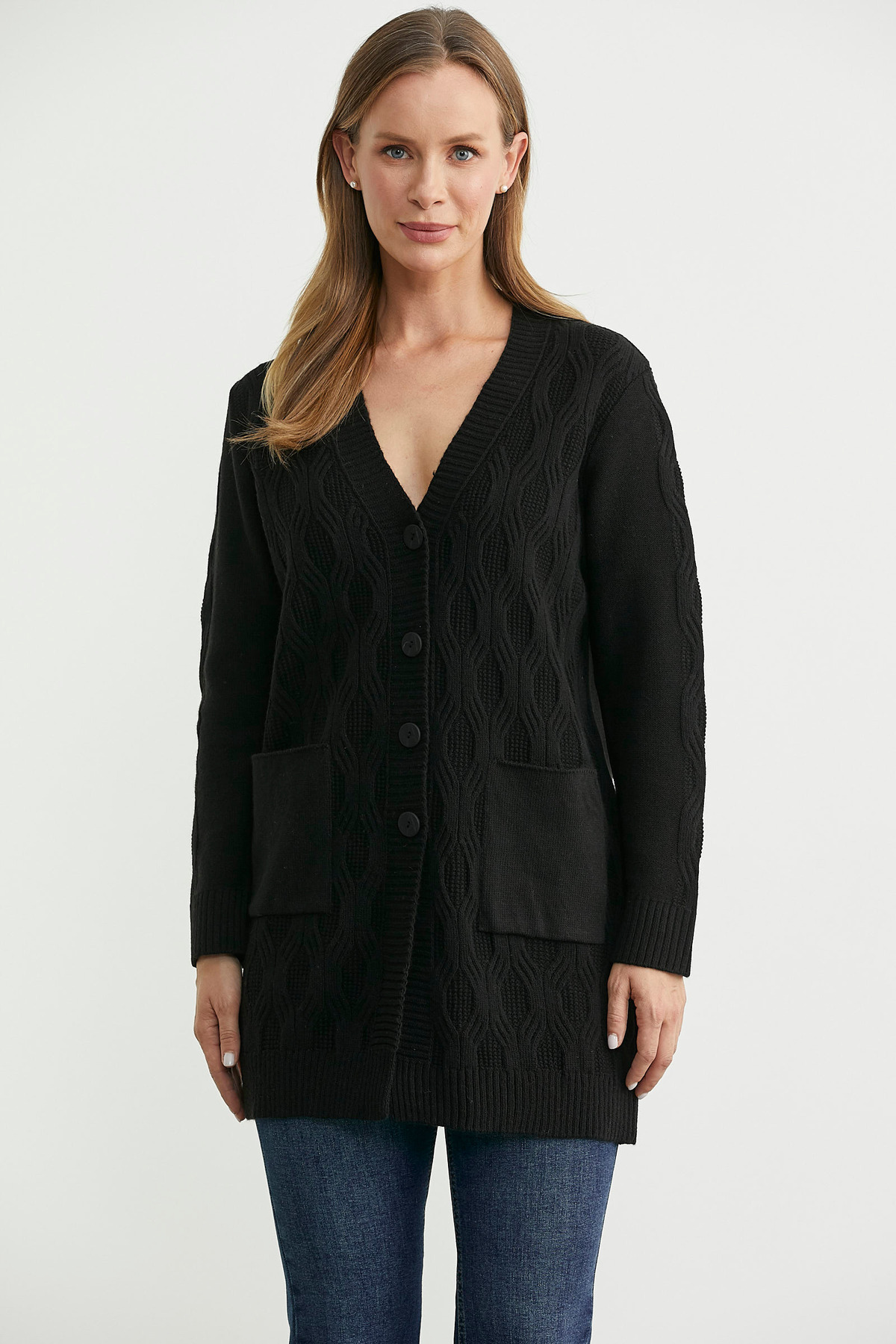 Kapüşonlu Fermuarlı Pullu Triko Hırka - Siyah Kapüşonlu Fermuarlı Pullu Triko Hırka - Siyah 21K2112-34350.0001-R0001 L/XL