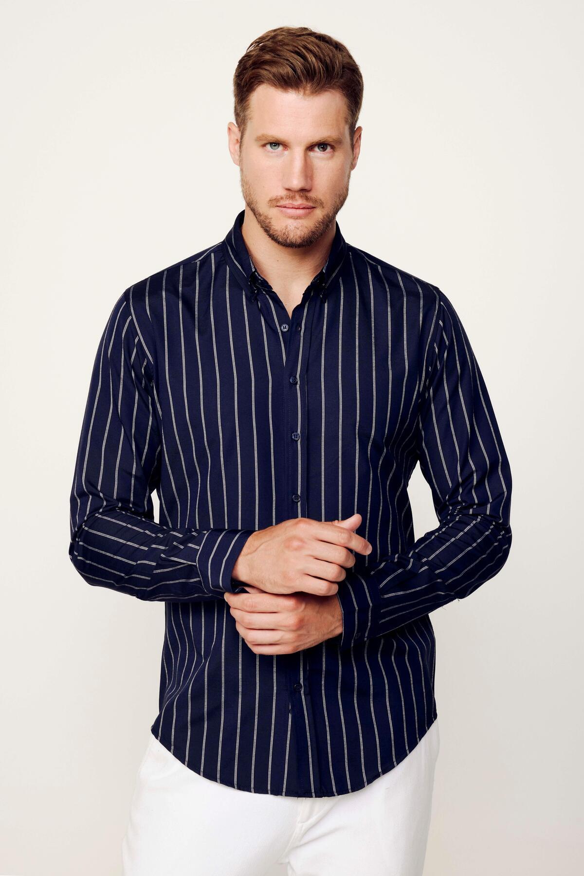 Erkek Lila Ince Dik Çizgili Uzun Kollu Slimfit Gömlek Erkek Lila Ince Dik Çizgili Uzun Kollu Slimfit Gömlek VAVN21Y-4300589-01 3XL