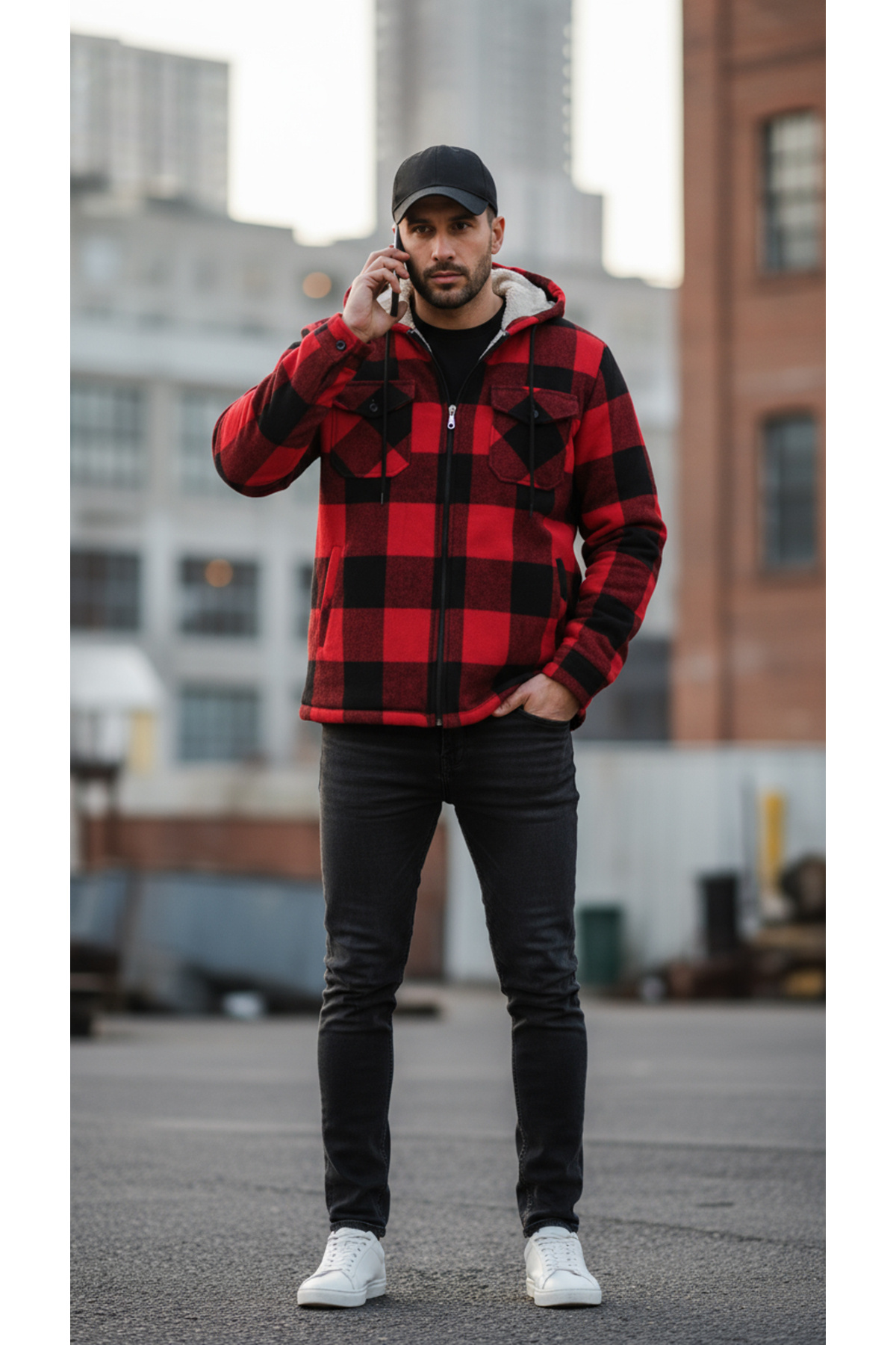 Kırmızı Ekose Şapkalı, Cepli Oduncu Erkek Gömlek Kırmızı Ekose Şapkalı, Cepli Oduncu Erkek Gömlek MCB2611117 2XL