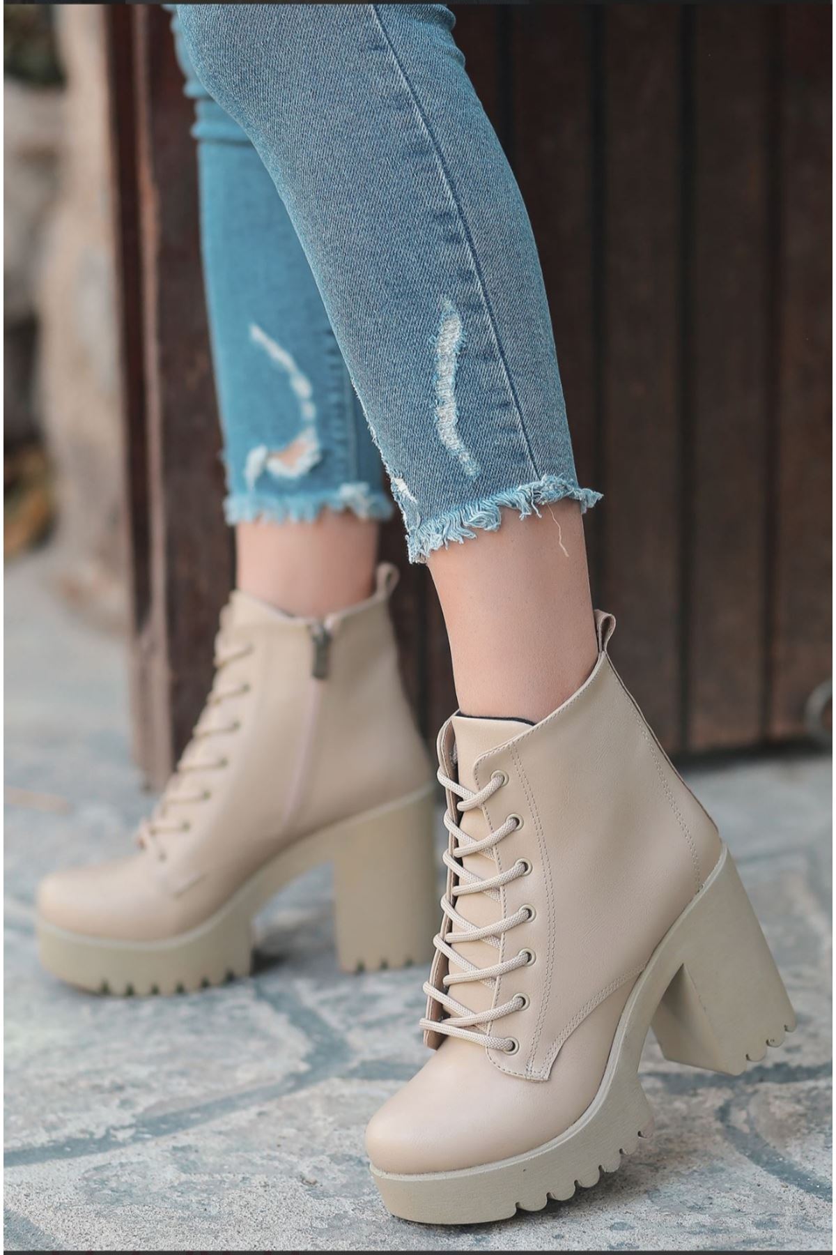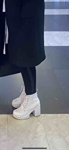 Jvl 004 Bağcıklı Detay Yüksek Topuk Bot Beyaz Deri Jvl 004 Bağcıklı Detay Yüksek Topuk Bot Beyaz Deri JVL 004 40