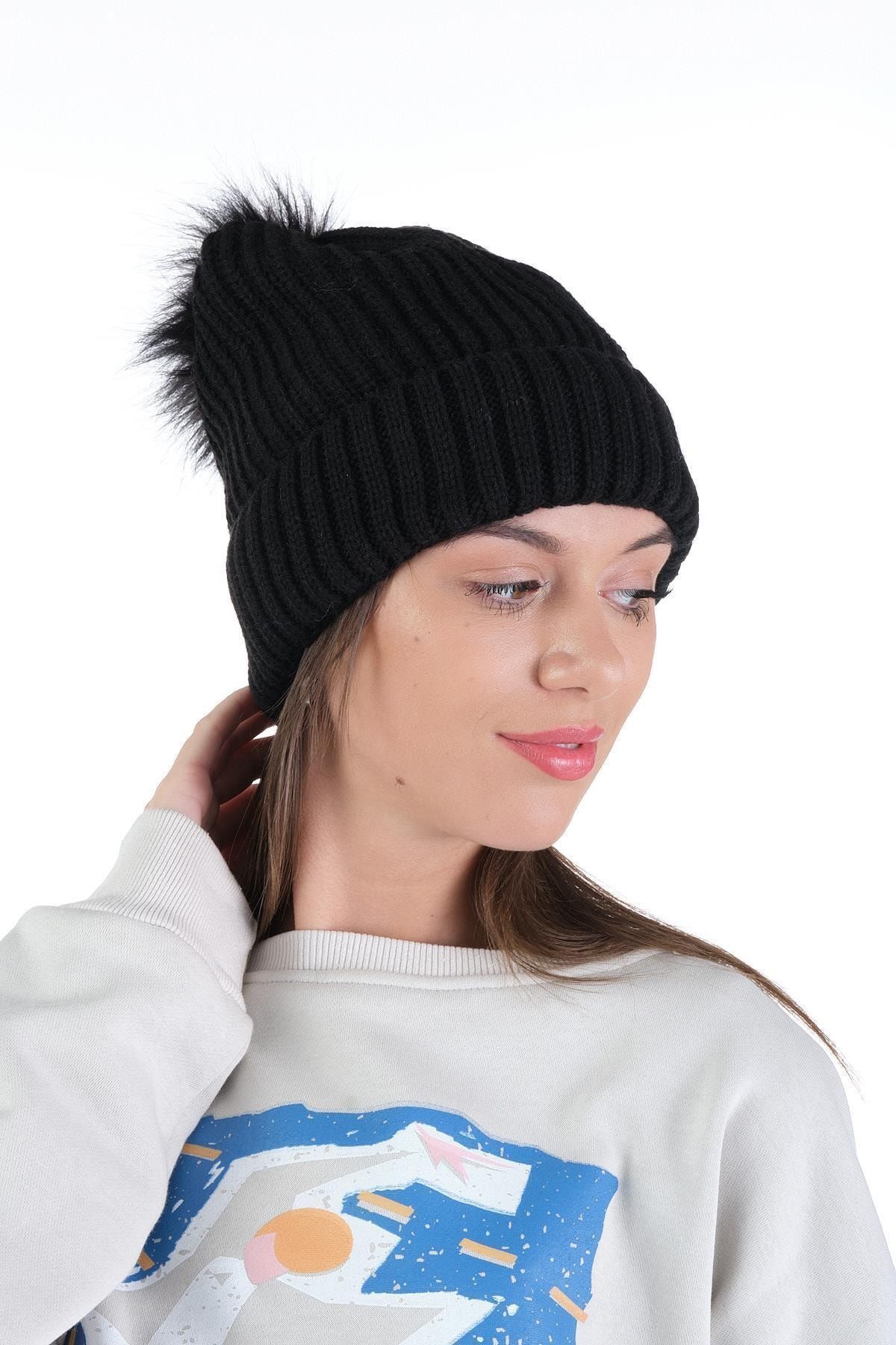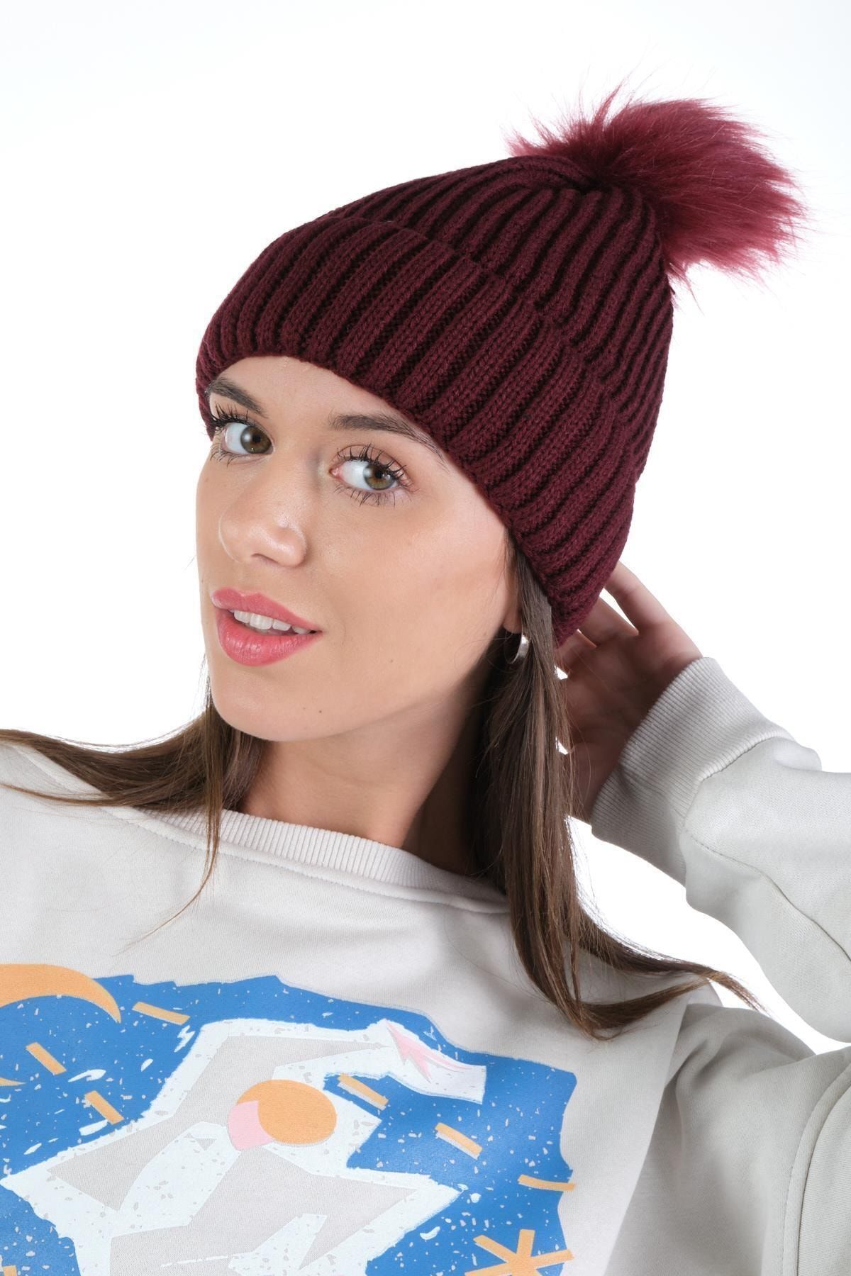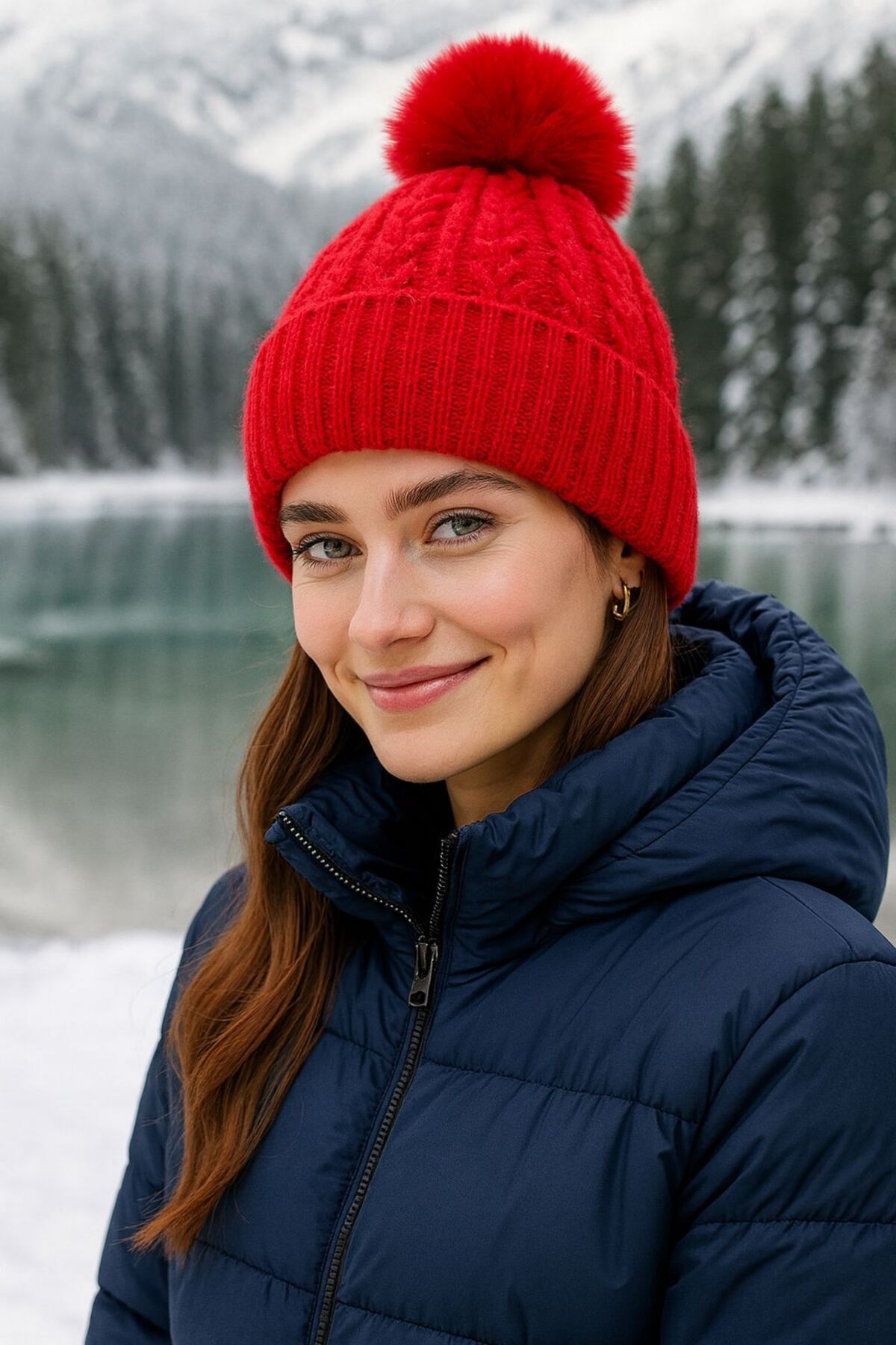 Kadın Kırmızı Kışlık Ponponlu Triko Bere Kadın Kırmızı Kışlık Ponponlu Triko Bere EIG-BR4 Standart