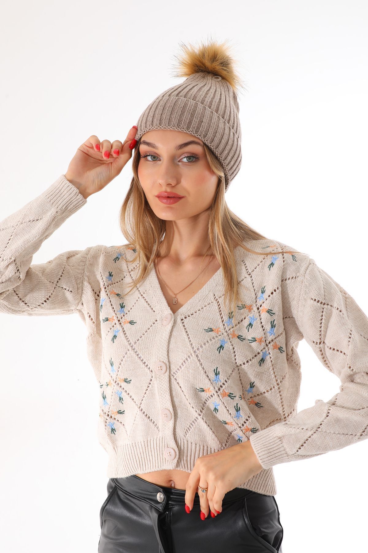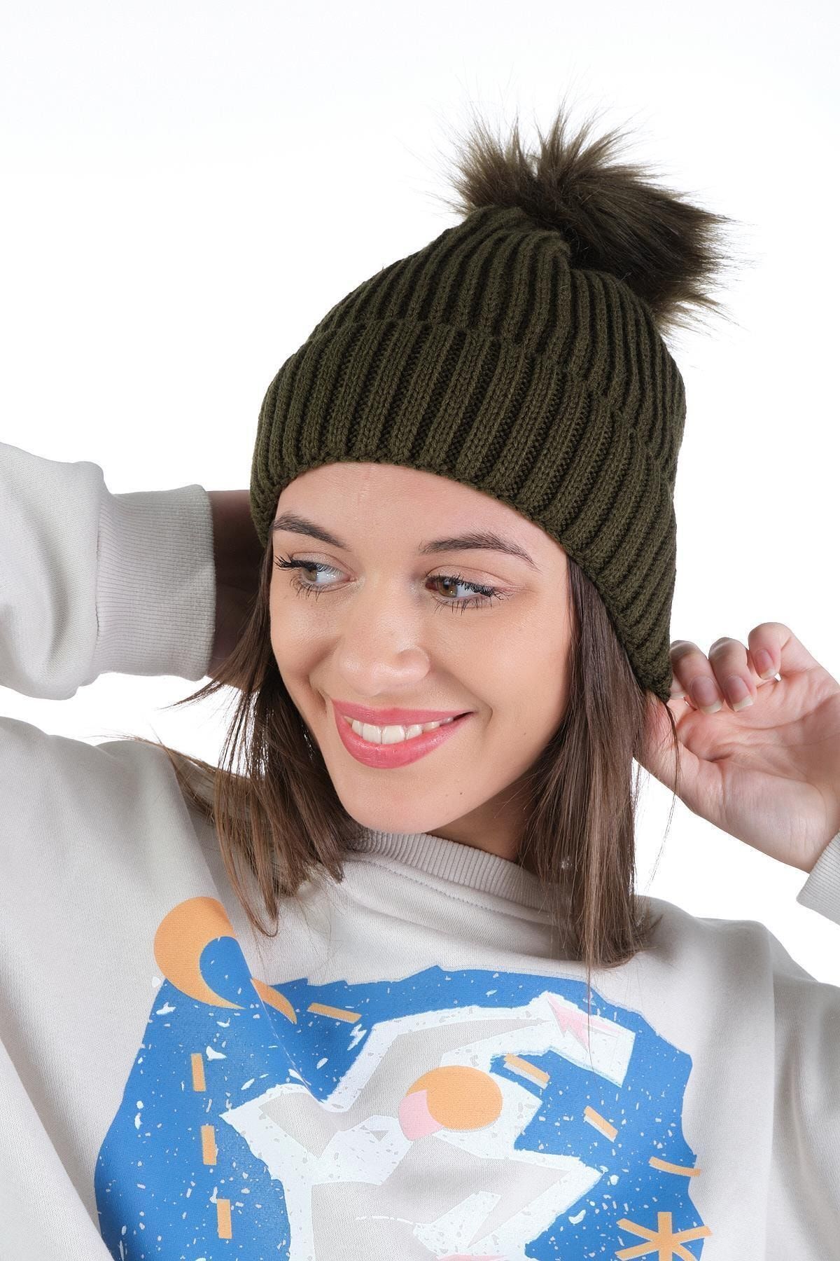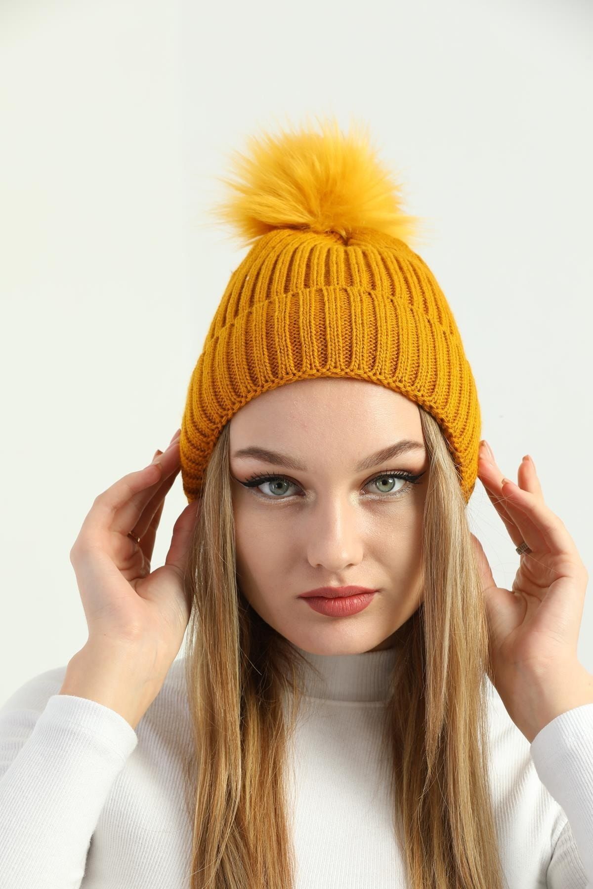 Kadın Kırmızı Kışlık Ponponlu Triko Bere Kadın Kırmızı Kışlık Ponponlu Triko Bere EIG-BR4 Standart