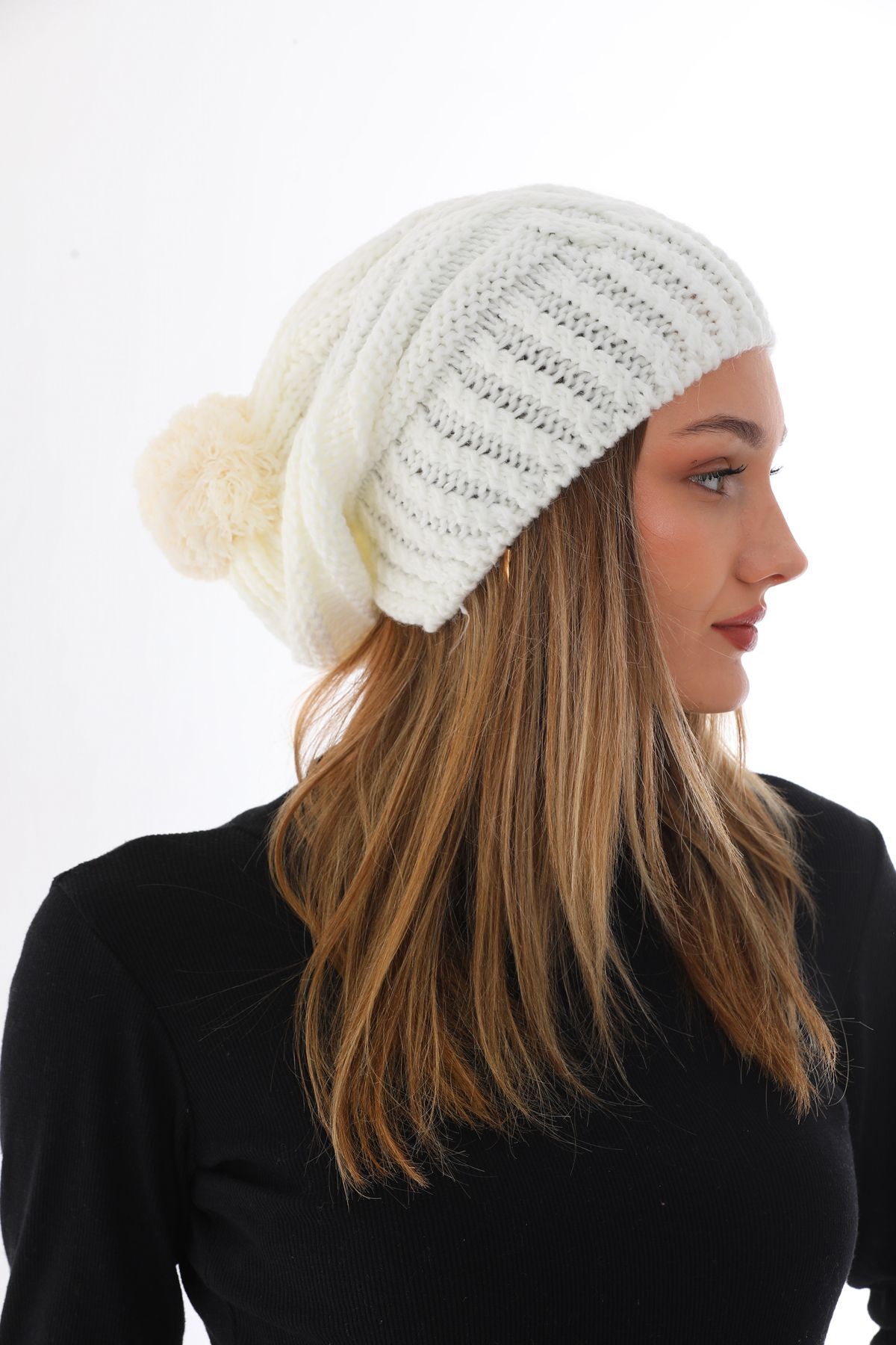 Kadın Ekru Kışlık Ponponlu Triko Bere Kadın Ekru Kışlık Ponponlu Triko Bere EIG-BR4 Standart