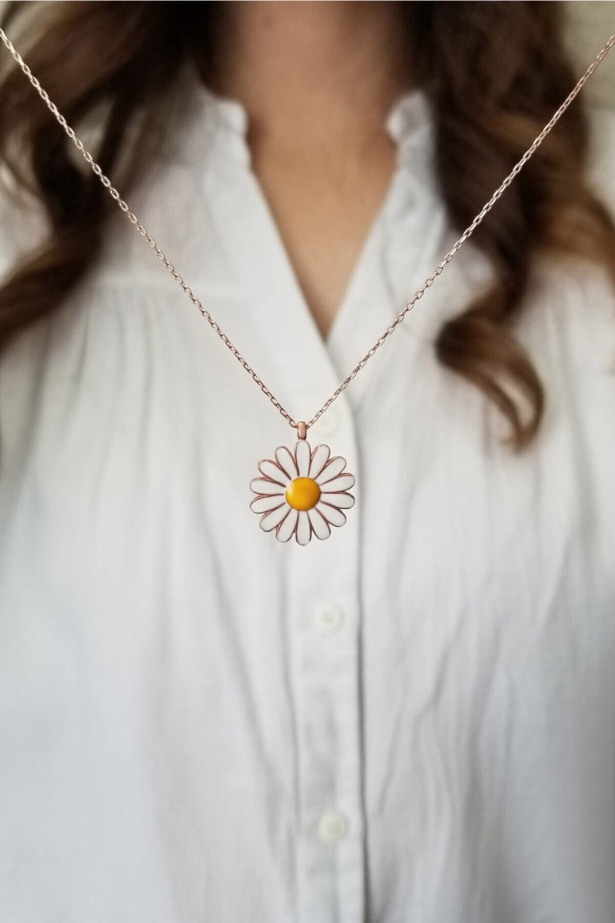 Kadın Papatya Tasarım Mineli Rose 925 Ayar Gümüş Kolye Kadın Papatya Tasarım Mineli Rose 925 Ayar Gümüş Kolye 00772 46 cm