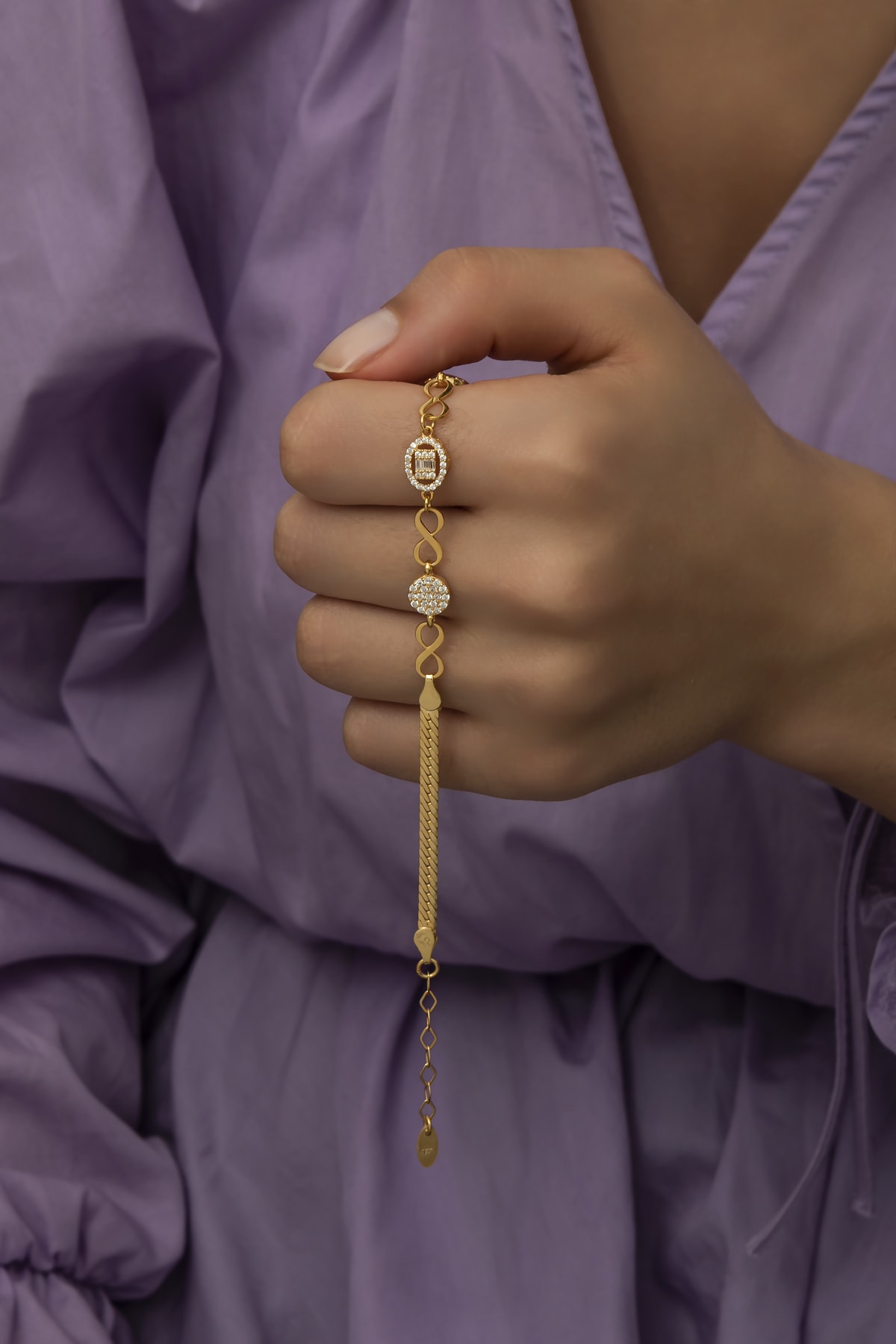 Baget Taşlı Papatya Ve Sonsuzluk Temalı 925 Ayar Gümüş Kadın Bileklik Baget Taşlı Papatya Ve Sonsuzluk Temalı 925 Ayar Gümüş Kadın Bileklik EGBL269 تک سایز