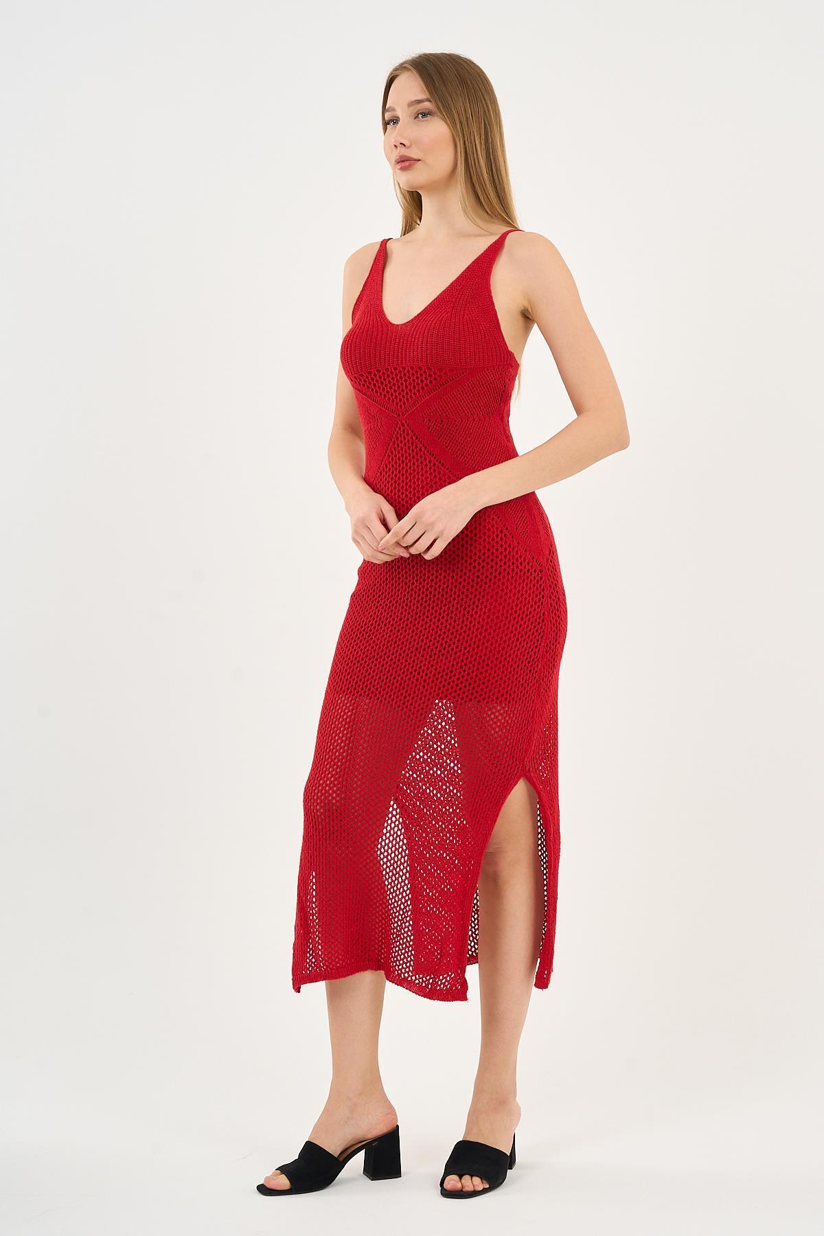 Kadın Kırmızı Ince Askılı Kruvaze Midi Saten Elbise Kadın Kırmızı Ince Askılı Kruvaze Midi Saten Elbise TYC00242217571 L