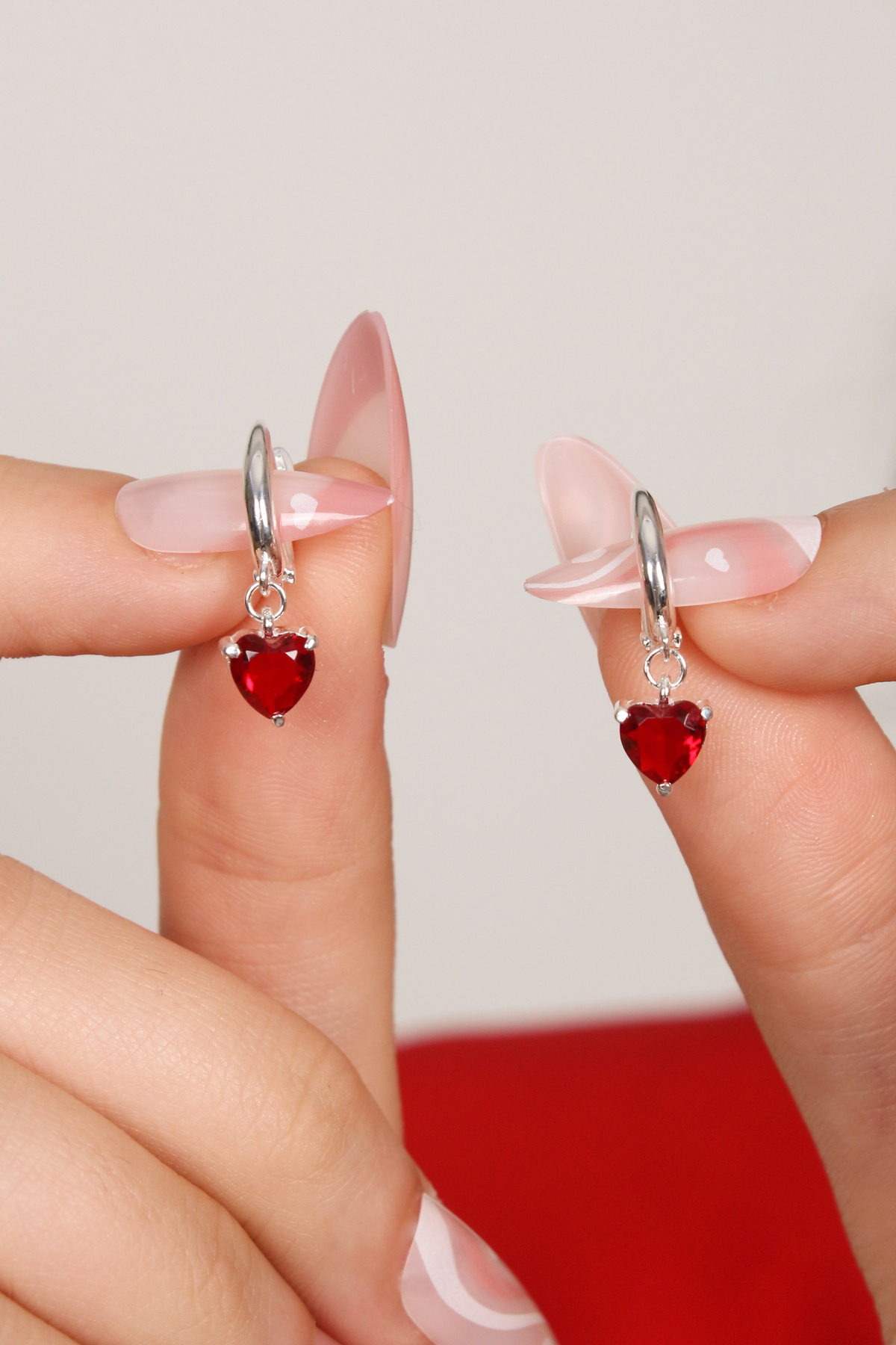 Kırmızı Beyaz Taşlı Oval Gümüş Küpe Kırmızı Beyaz Taşlı Oval Gümüş Küpe KÜP.KR.RO00290 تک سایز