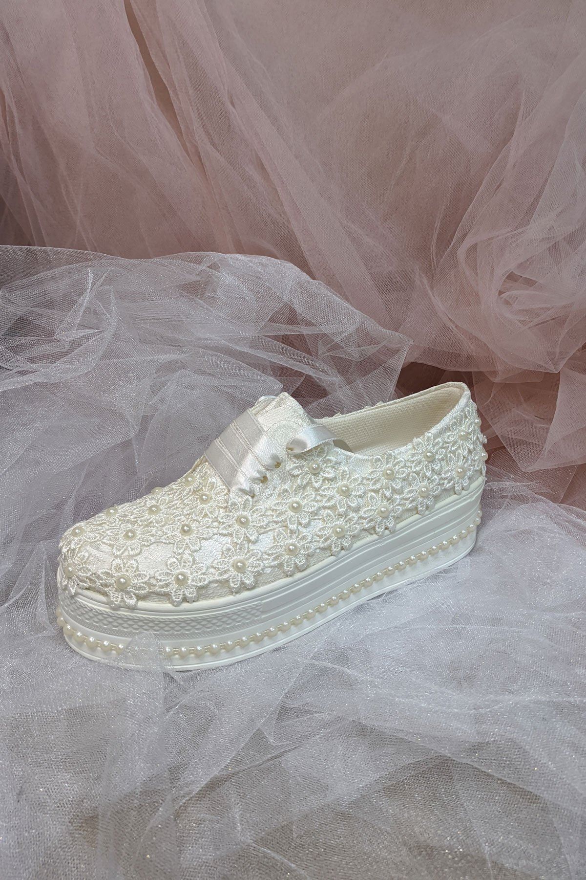 338 Serisi Dolgu Topuk Çiçek Güpürlü Gelinlik Ayakkabısı 338 Serisi Dolgu Topuk Çiçek Güpürlü Gelinlik Ayakkabısı BB03S338 40