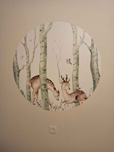 Orman Ve Ceylan Temalı Yuvarlak Daire Duvar Stickeri Orman Ve Ceylan Temalı Yuvarlak Daire Duvar Stickeri tgbdairesticker 75 x 75
