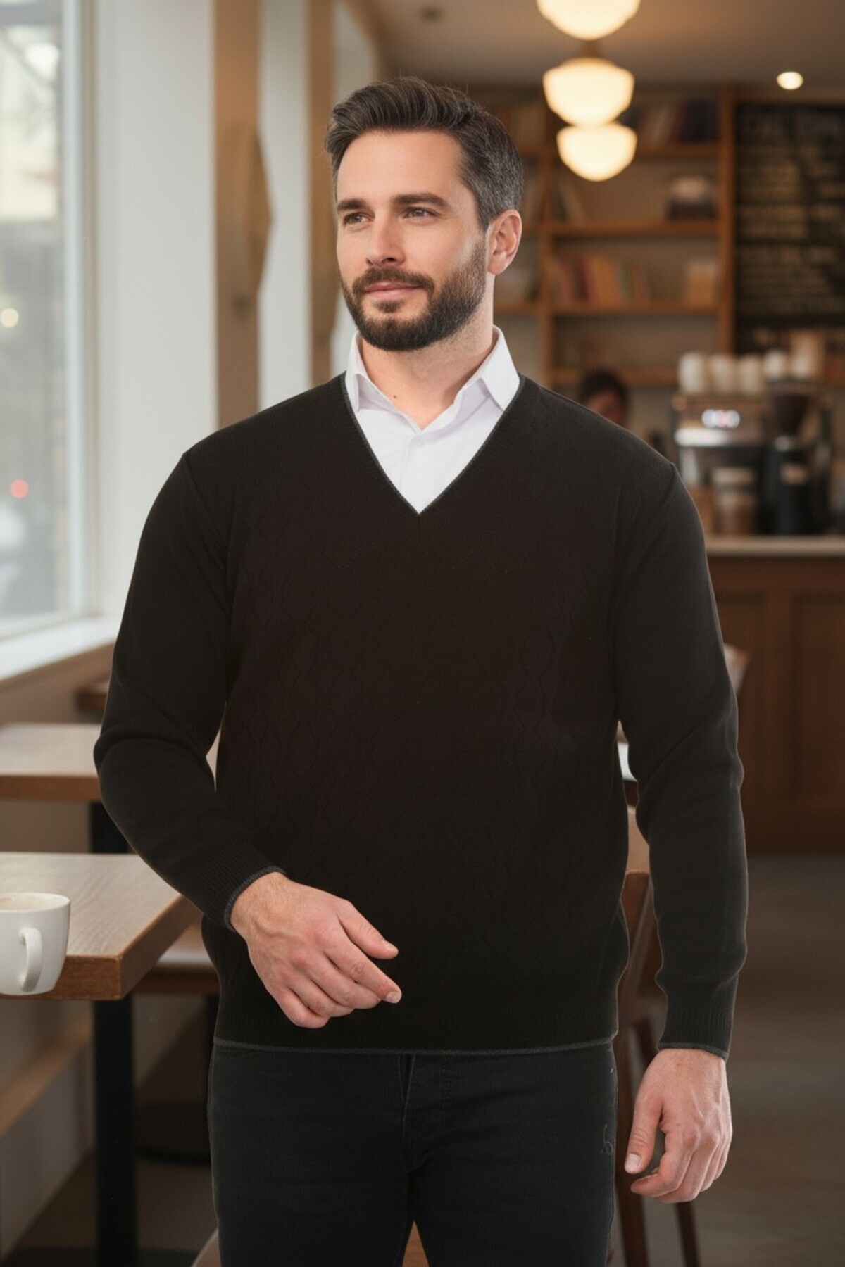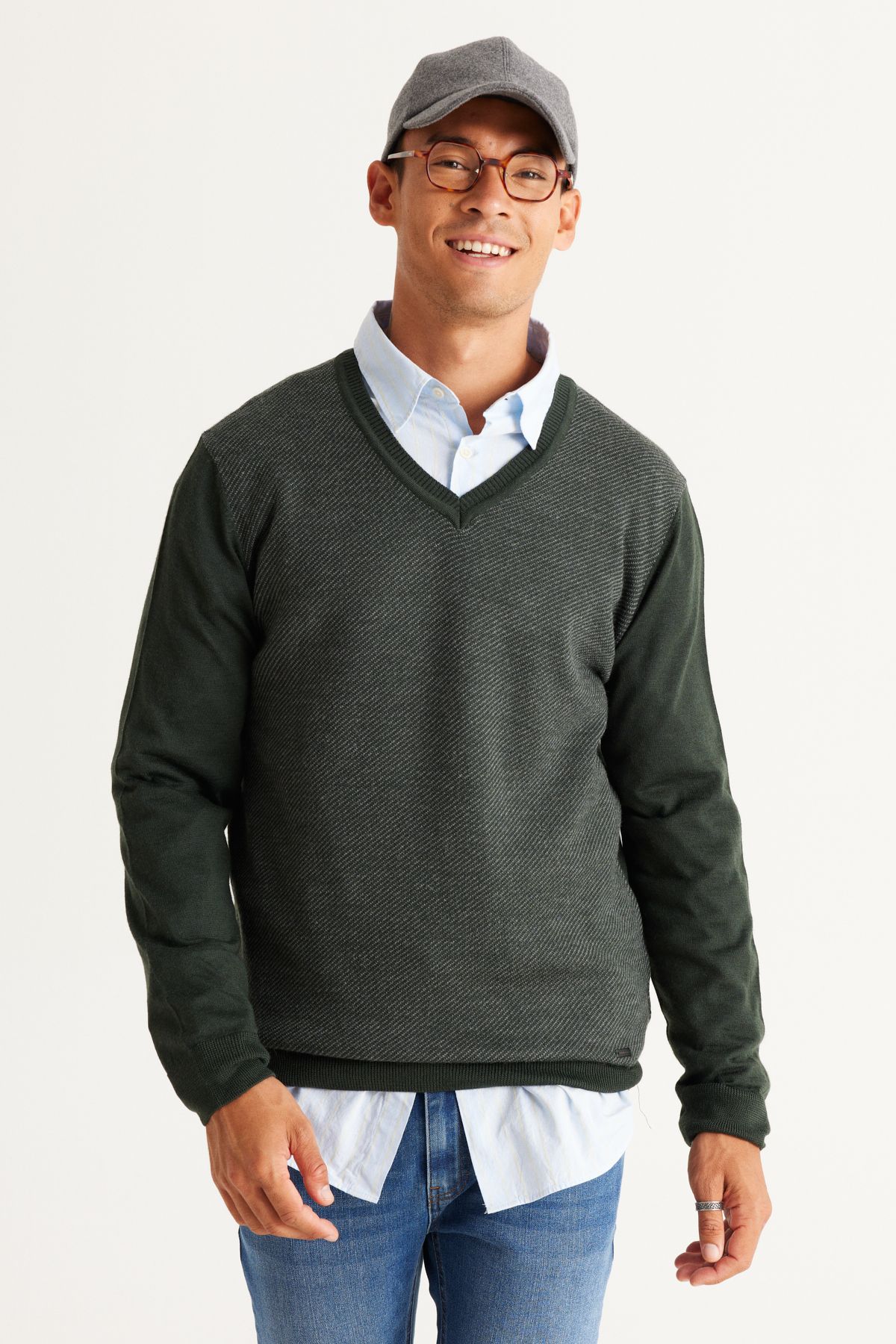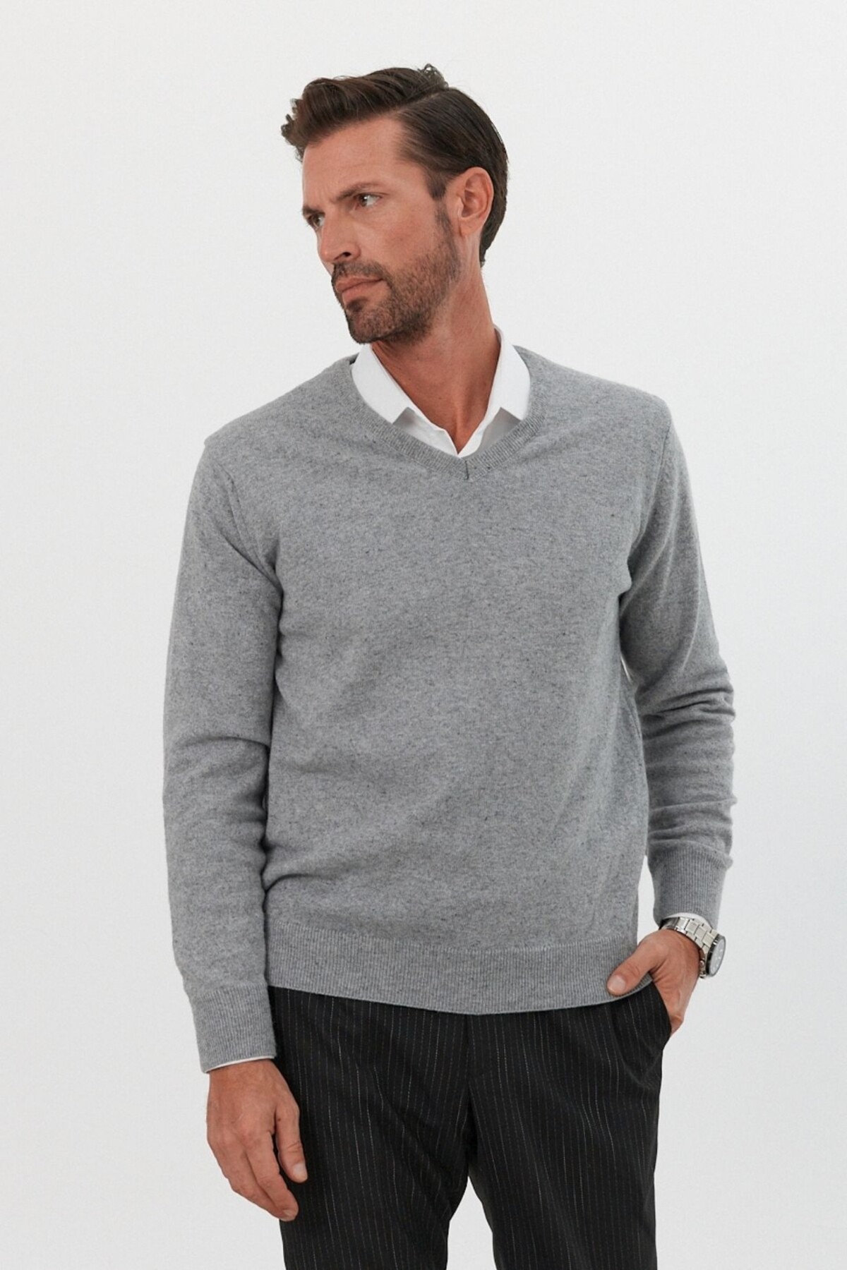 Erkek Gri Desenli V Yaka Triko Kazak Erkek Gri Desenli V Yaka Triko Kazak 3400ETC21A05 2XL