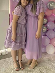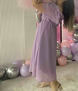 Kadın Carmen Yaka Volanlı Kuşaklı Büyük Beden Şifon Lila Elbise Kadın Carmen Yaka Volanlı Kuşaklı Büyük Beden Şifon Lila Elbise 4003 3XL