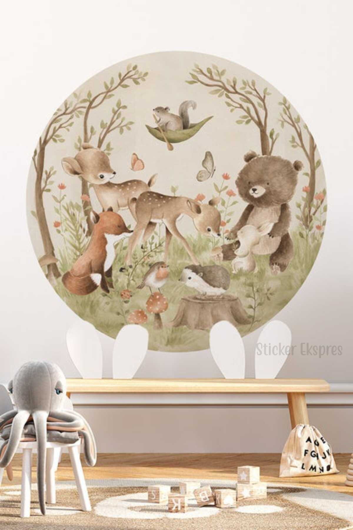 Yuvarlak Daire Sevimli Hayvanlar Duvar Stickeri Yuvarlak Daire Sevimli Hayvanlar Duvar Stickeri tgbdairesticker 75 x 75