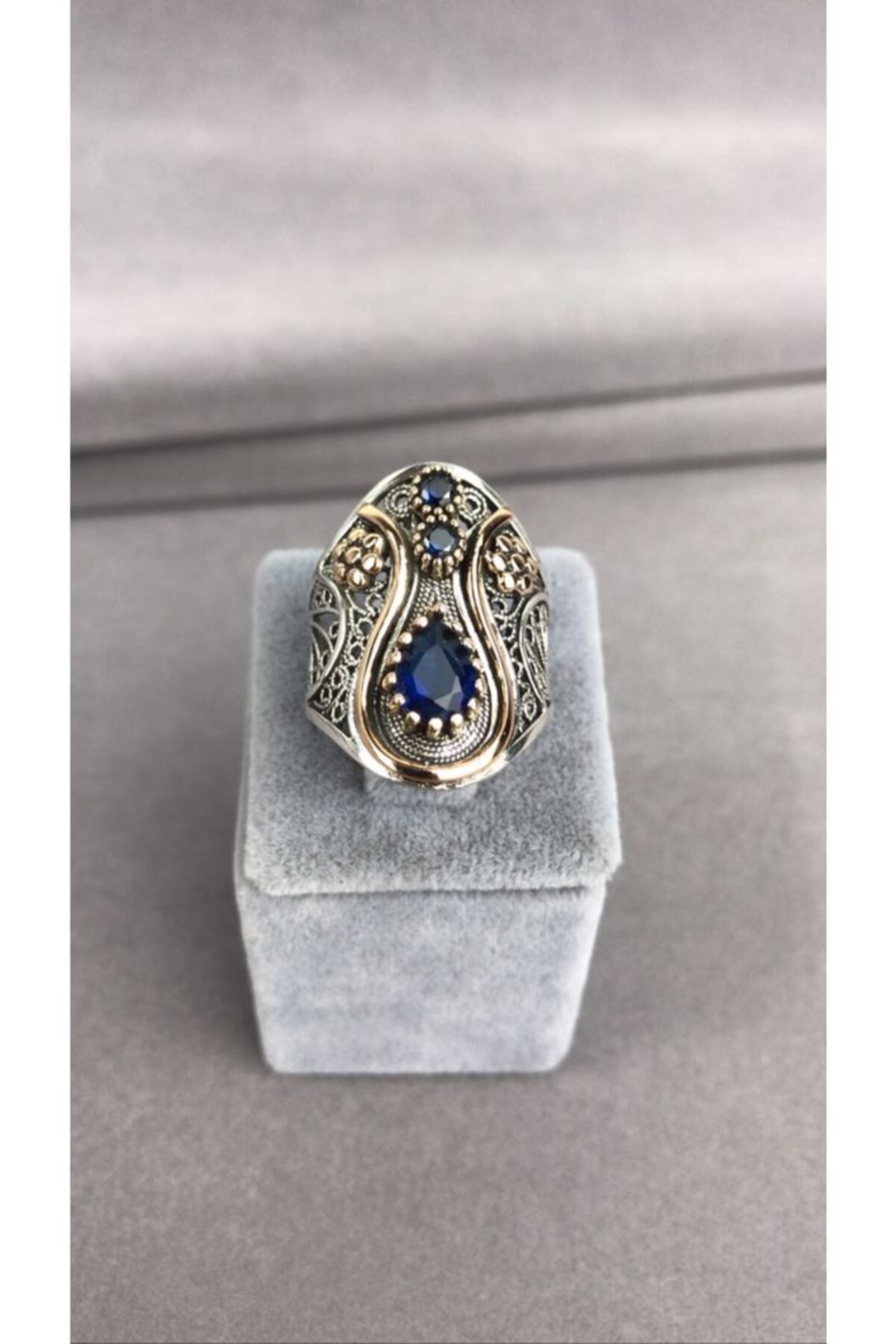 Telkari Safir Taşlı Gümüş Kadın Yüzük Telkari Safir Taşlı Gümüş Kadın Yüzük YÜZÜK-003 تک سایز