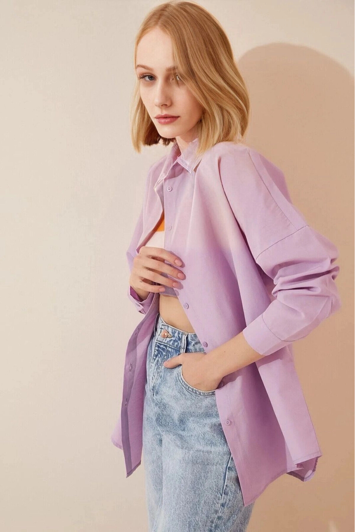 Kadın Açık Lila Oversize Uzun Basic Gömlek HZL22W-BD139001 Kadın Açık Lila Oversize Uzun Basic Gömlek HZL22W-BD139001 50
