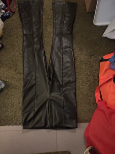 Kadın Siyah Yüksek Bel Paça Yırtmaçlı Fermuarlı Neeko Deri Pantolon Kadın Siyah Yüksek Bel Paça Yırtmaçlı Fermuarlı Neeko Deri Pantolon HLNEEKODERIPANTOLON L