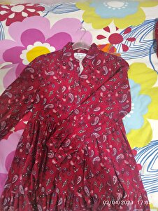 Şal Desenli Uzun Kollu Fırfırlı Elbise Şal Desenli Uzun Kollu Fırfırlı Elbise 2KAL88016IW 42