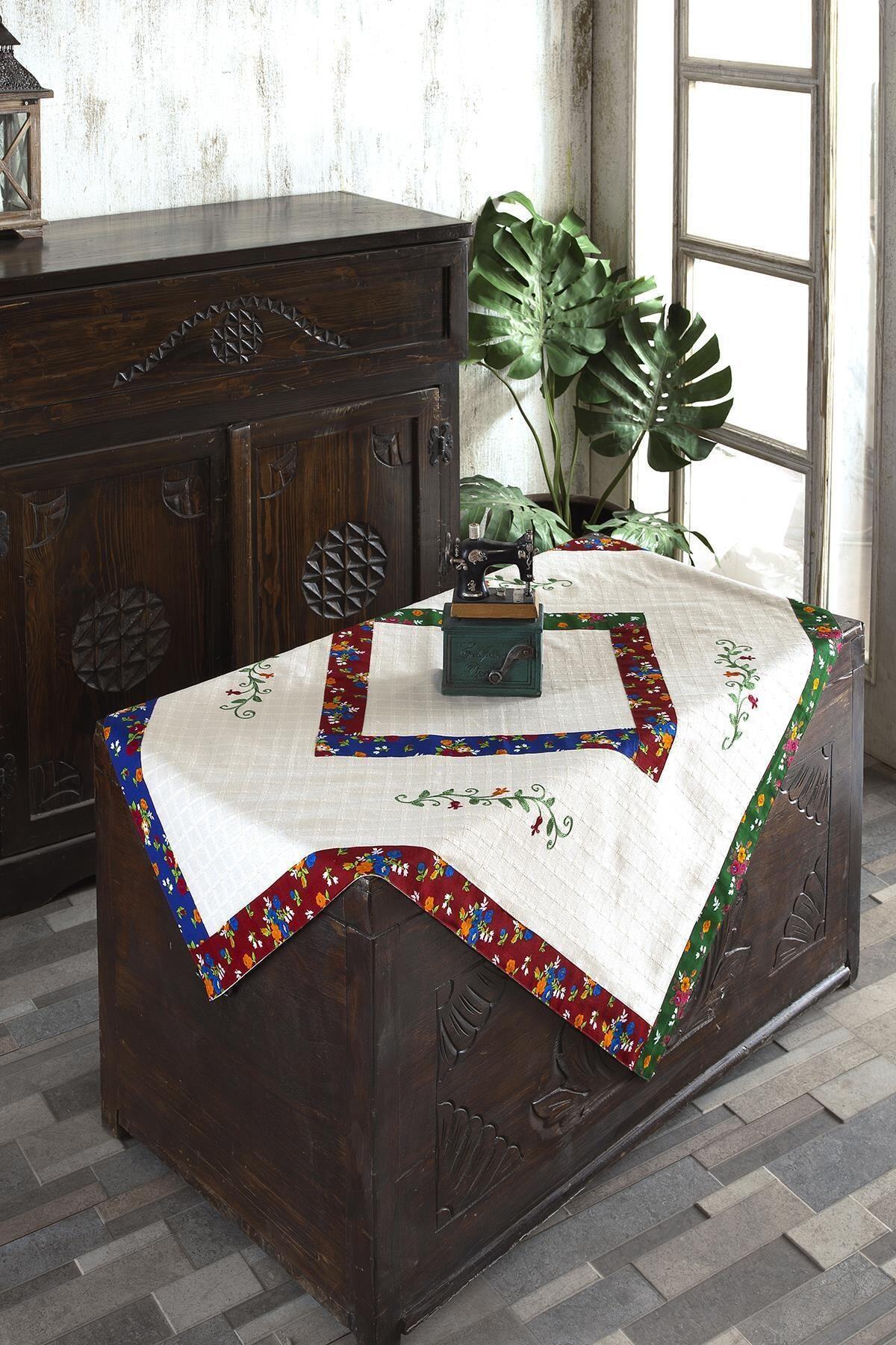 Sütlü Kahve Bordürlü Yamalı Işlemeli 90x90 Cm Masa Örtüsü Sütlü Kahve Bordürlü Yamalı Işlemeli 90x90 Cm Masa Örtüsü KN009-MK 90 x 90