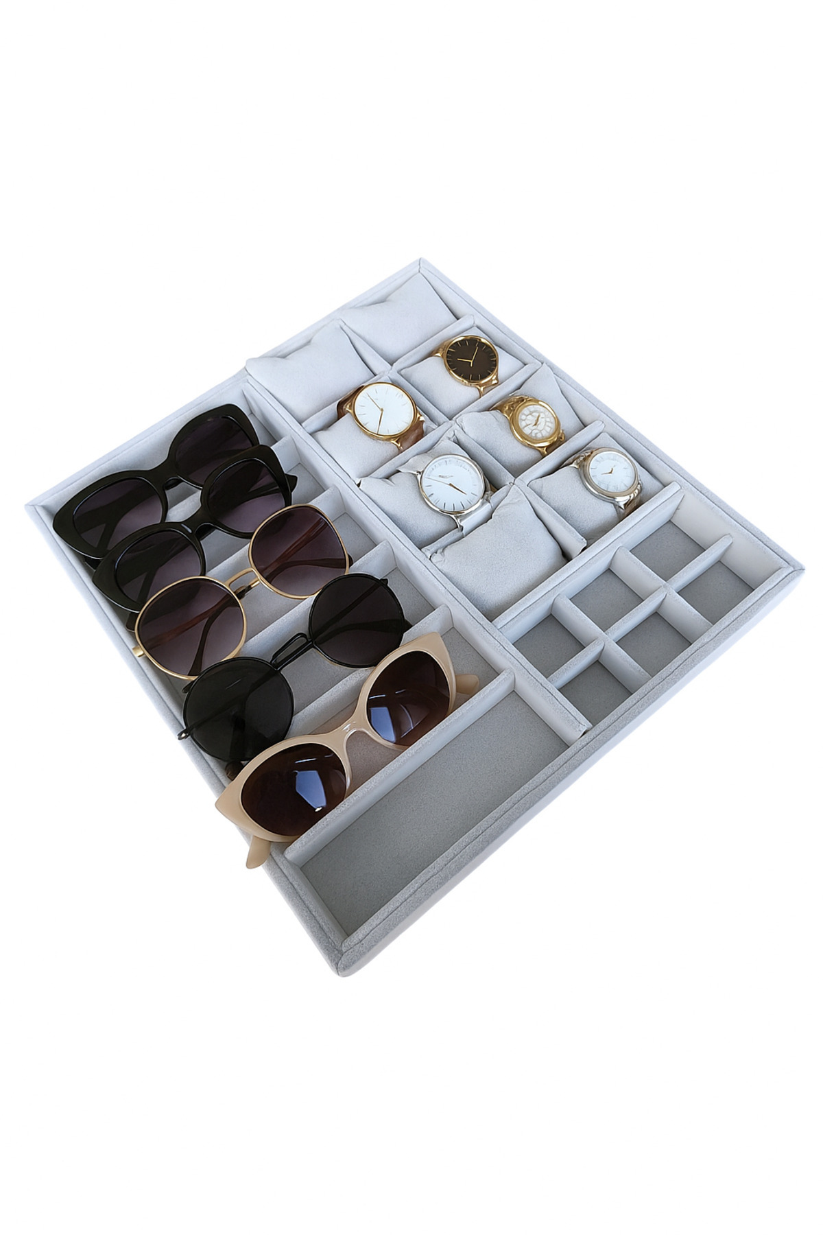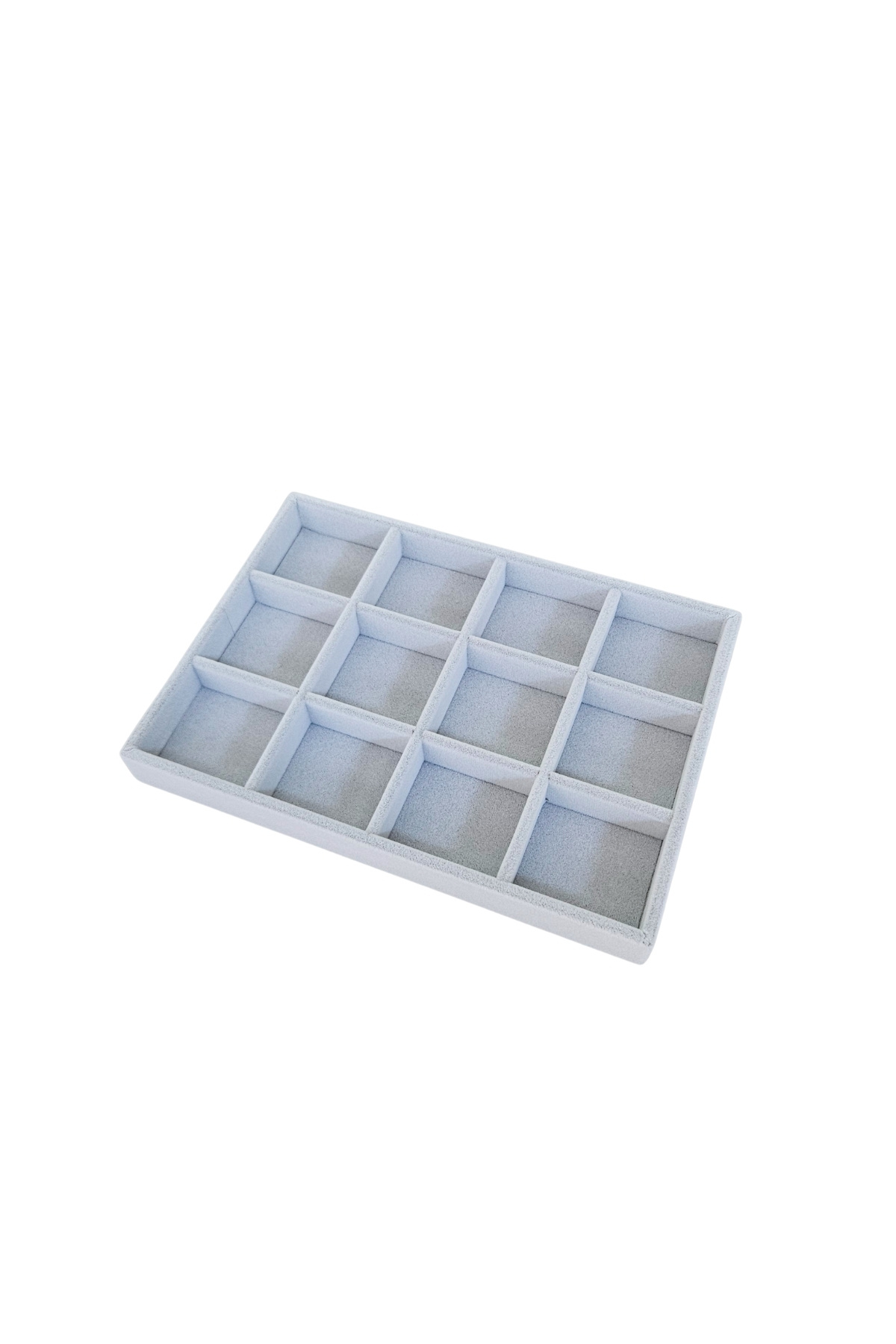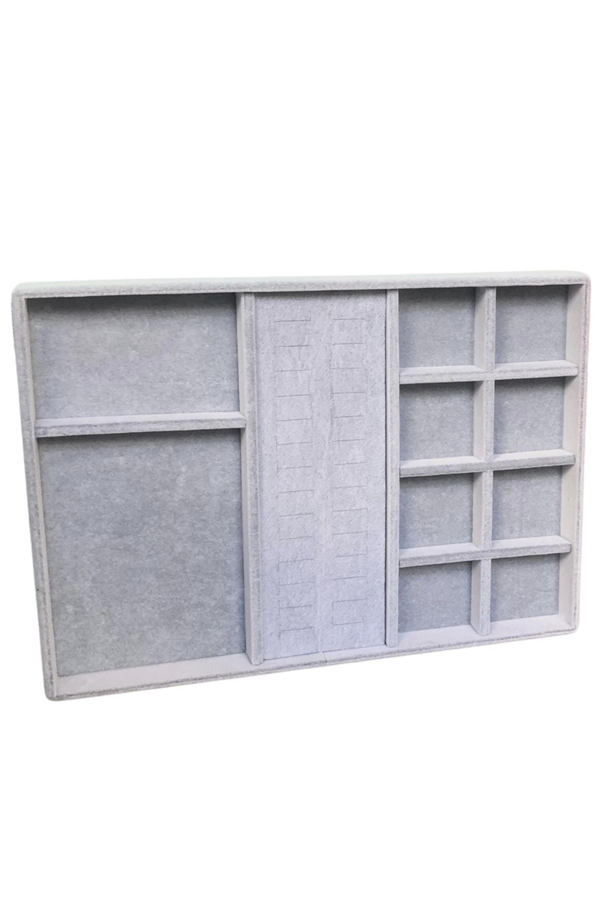 12 Bölmeli Kolye Ucu Küpe Yüzük Servis Tablası Gri Süet 12 Bölmeli Kolye Ucu Küpe Yüzük Servis Tablası Gri Süet SAAT-05 12 Gri تک سایز