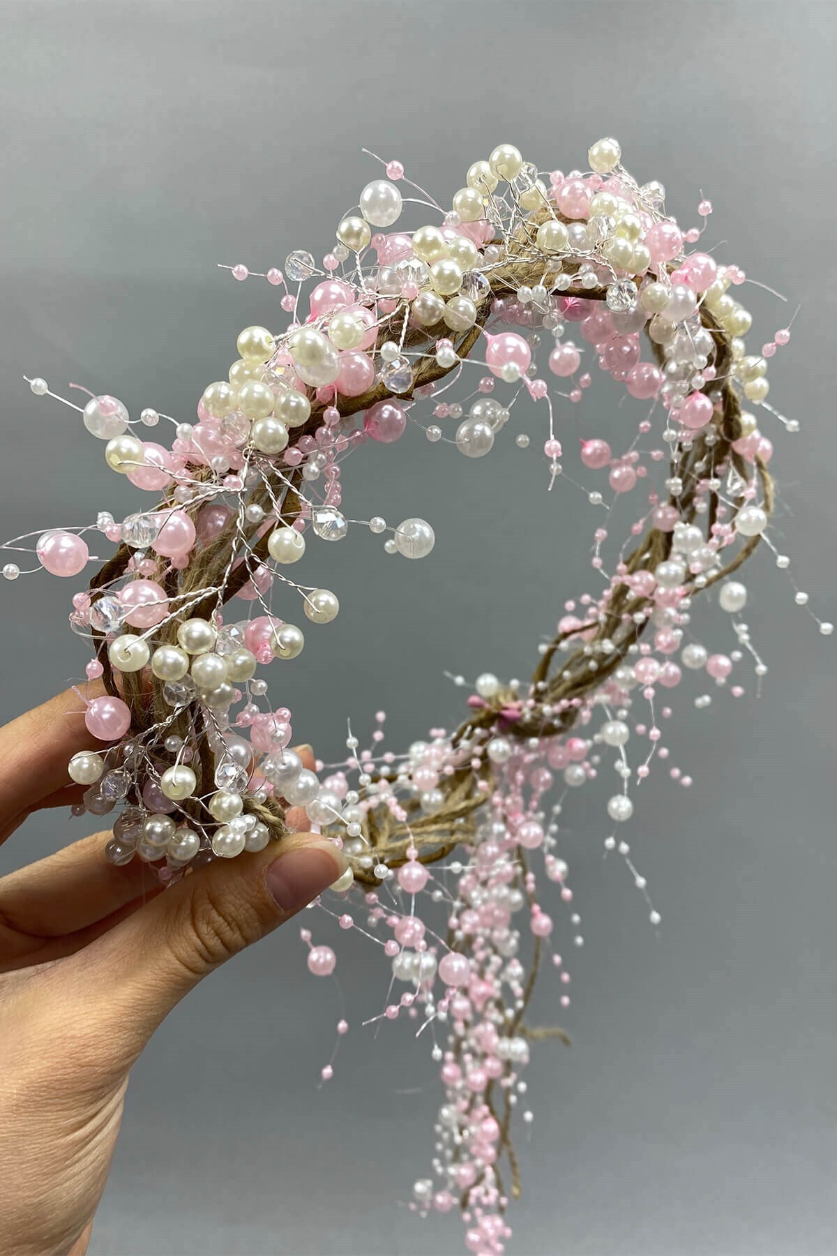 Kristalli Krem İncili ve Hasırlı Gelin Tacı Kristalli Krem İncili ve Hasırlı Gelin Tacı TXCB57F6A914492 تک سایز