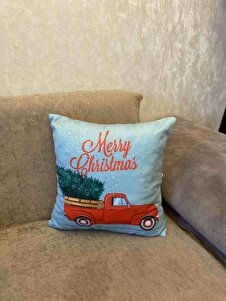 Merry Christmas ve Çam Ağacı Taşıyan Araba Desenli Dijital Baskılı Kırlent Kılıfı Merry Christmas ve Çam Ağacı Taşıyan Araba Desenli Dijital Baskılı Kırlent Kılıfı YSaso-054 43 x 43