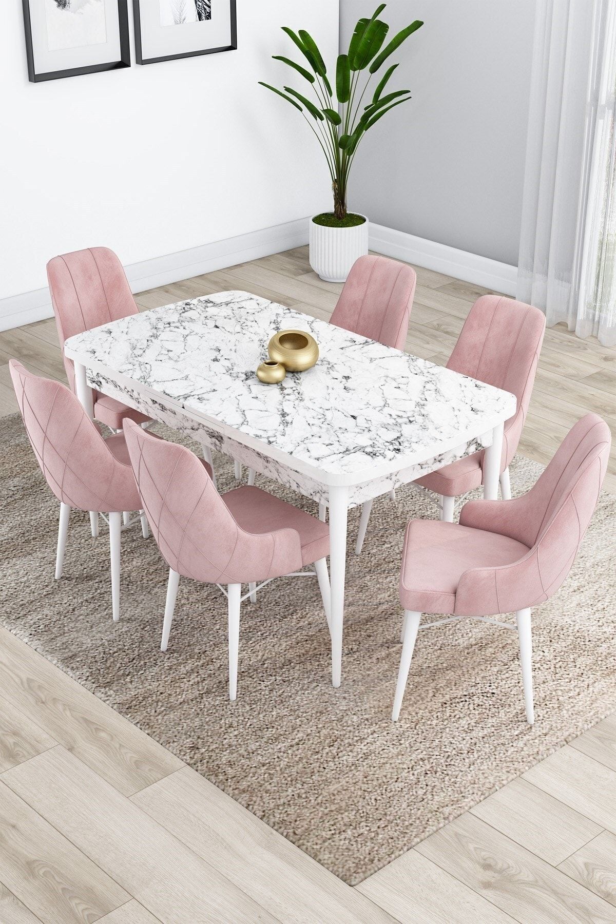 Kor Serisi 70x114 Açılabilir Mutfak Masası Takımı Beyaz Mermer Desen Masa 6 Gül Kurusu Sandalye Kor Serisi 70x114 Açılabilir Mutfak Masası Takımı Beyaz Mermer Desen Masa 6 Gül Kurusu Sandalye PRA-4859946-205323 تک سایز