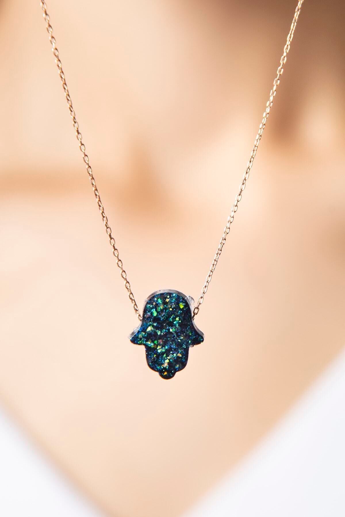 Büyük Boy Opal Fatma Ana Eli Gümüş Kolye Büyük Boy Opal Fatma Ana Eli Gümüş Kolye YCK075 45 cm