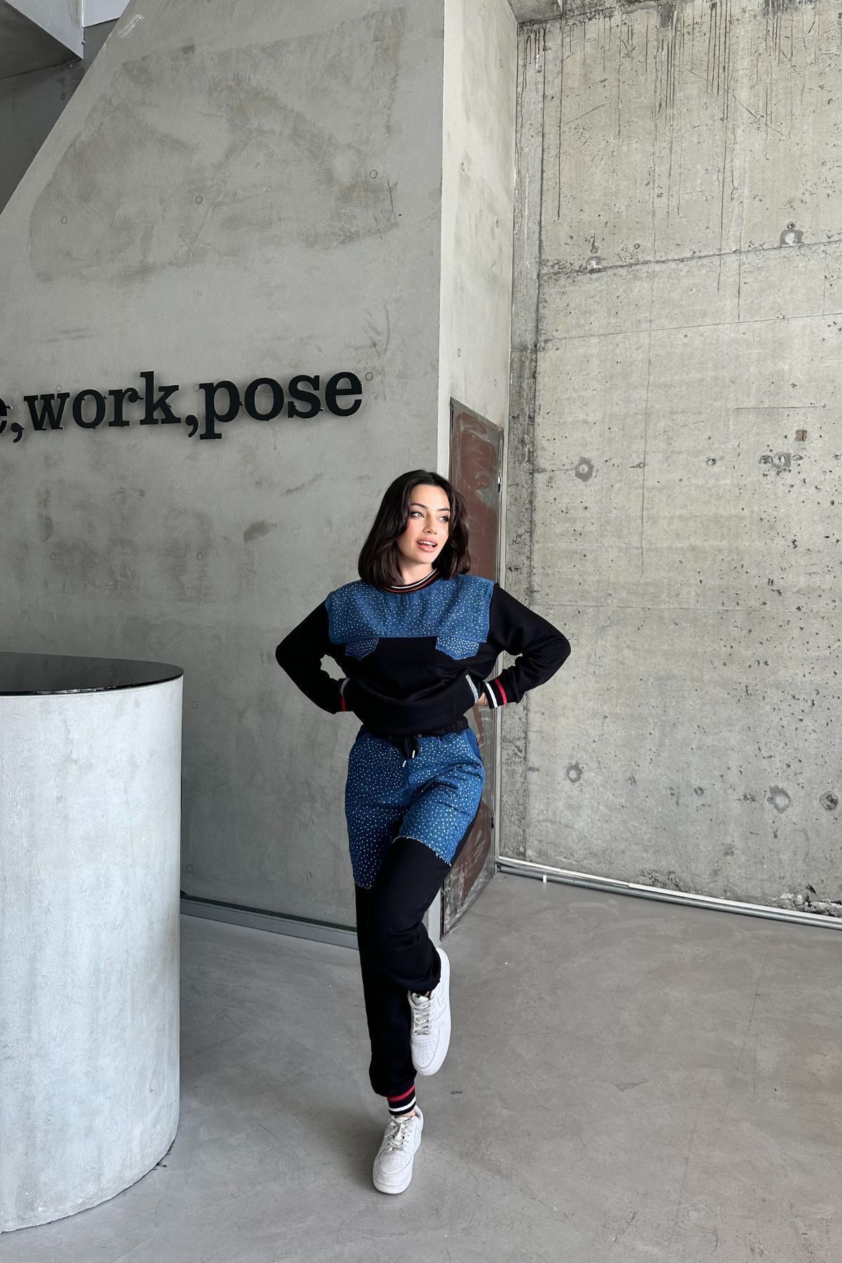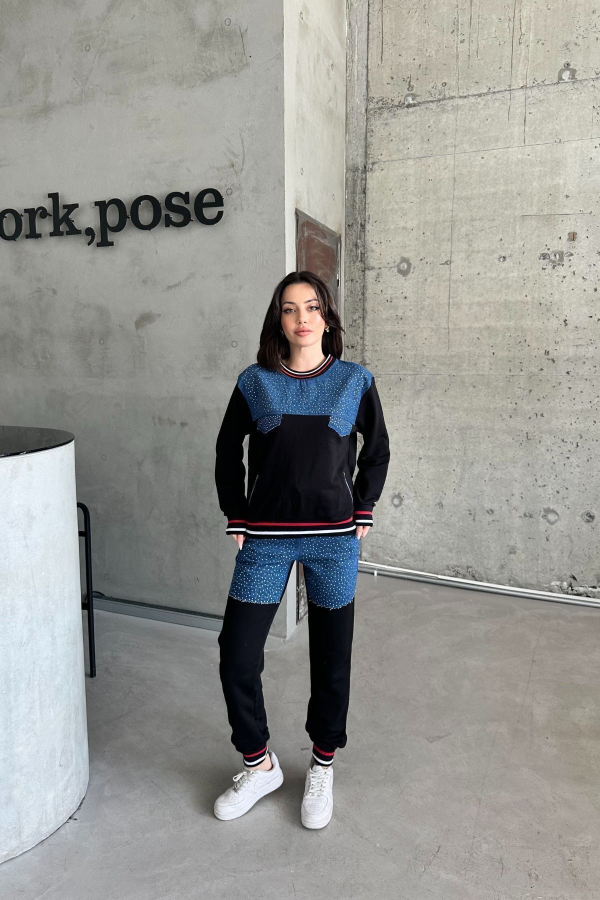 Kadın Taşlı Sweat Basic Pantolon Eşofman Takımı Kadın Taşlı Sweat Basic Pantolon Eşofman Takımı Xr10011001 L