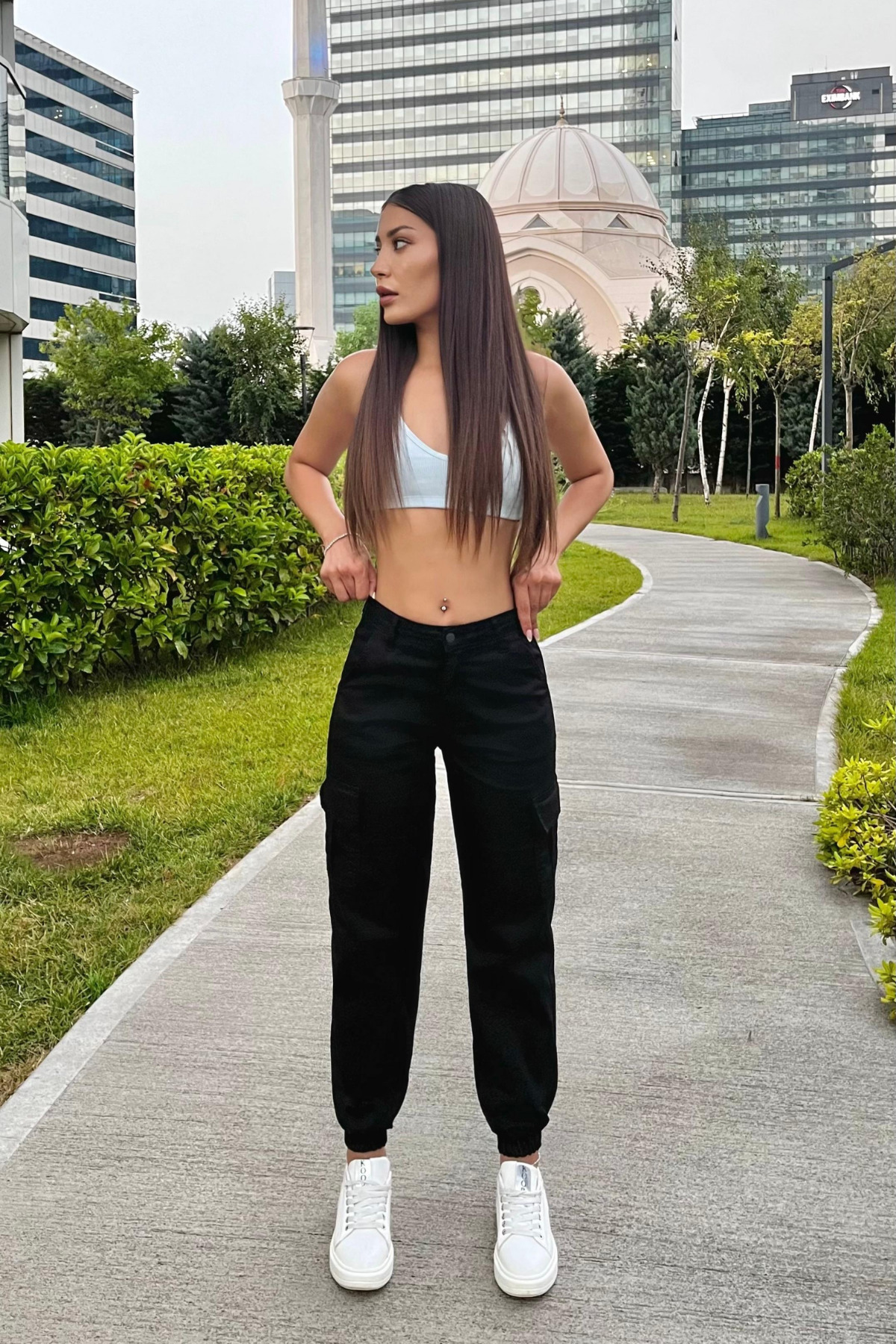 Siyah Kargo Cepli Gabardin Kumaş Pantolon Siyah Kargo Cepli Gabardin Kumaş Pantolon BKL00004 XL