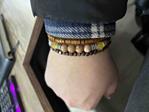 Çok Şık Üç Adet Doğal Taş ve Ahşap Bileklik Çok Şık Üç Adet Doğal Taş ve Ahşap Bileklik PDRACS057 S/M