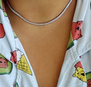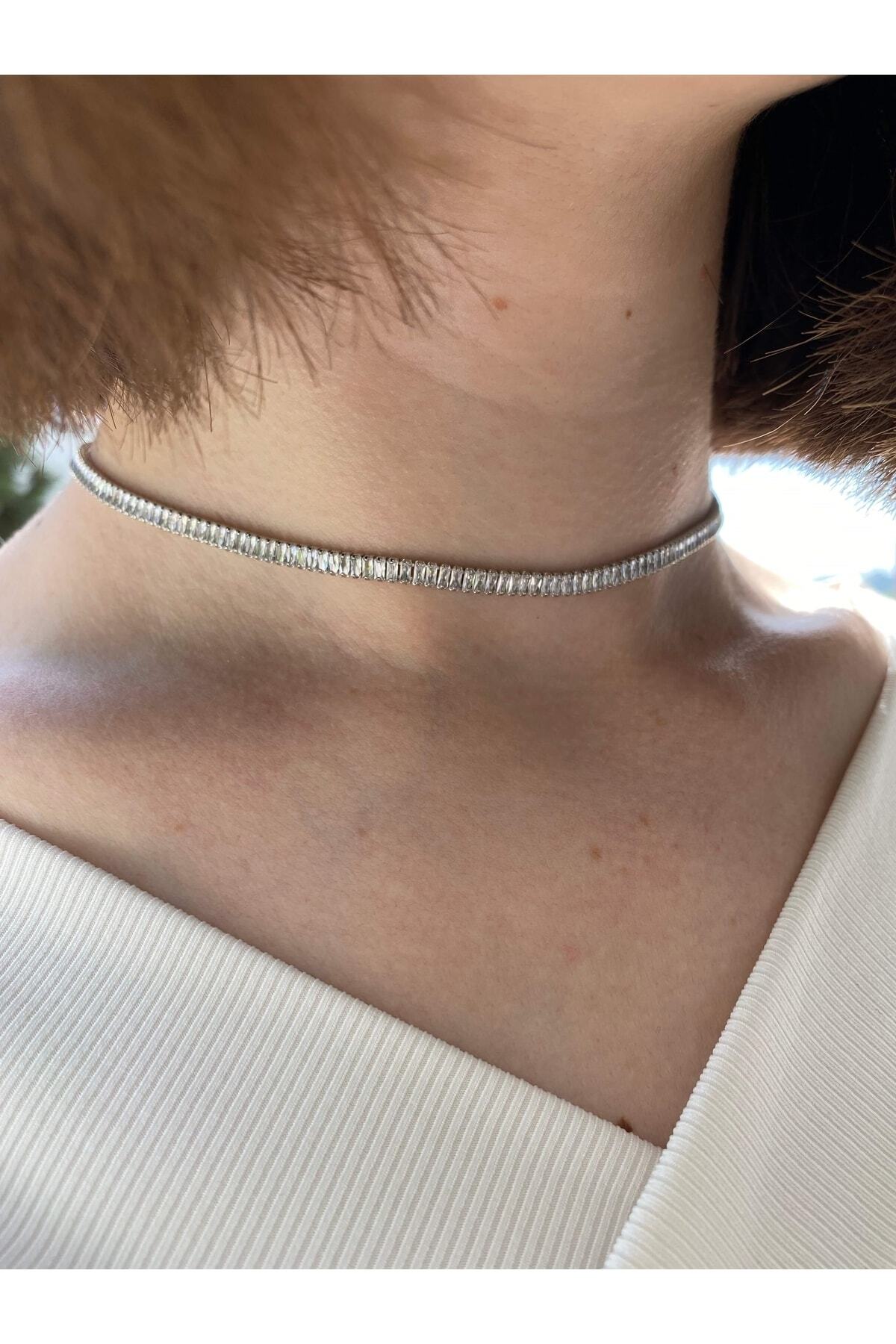Gümüş Renk Baget Zirkon Taşlı Su Yolu Choker Kolye Gümüş Renk Baget Zirkon Taşlı Su Yolu Choker Kolye JNS24789 تک سایز