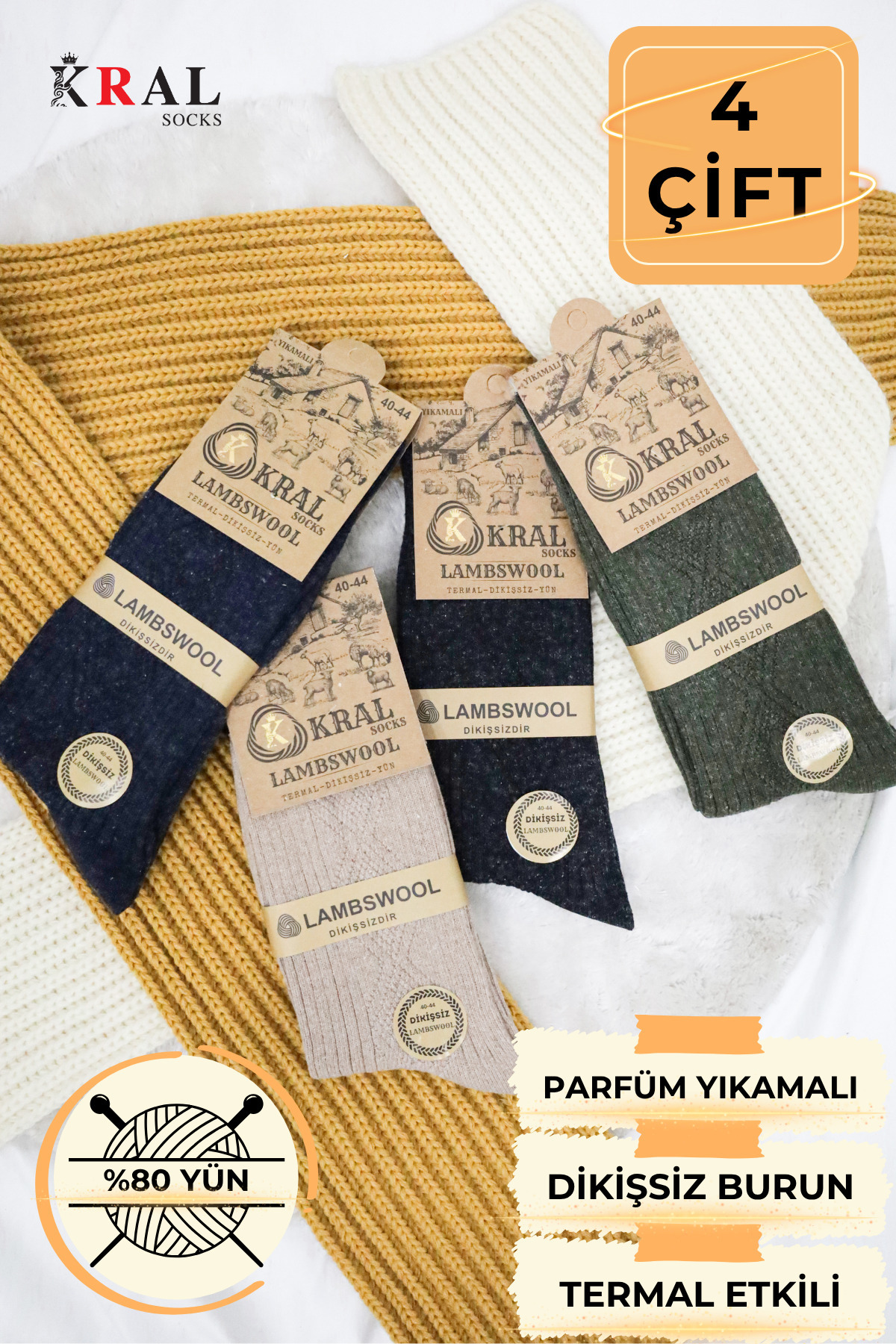 4'lü Thermal Etkili İnce Örgülü Kışlık Çorap Lambswool Yünlü. 4'lü Thermal Etkili İnce Örgülü Kışlık Çorap Lambswool Yünlü. KRL1 39-42
