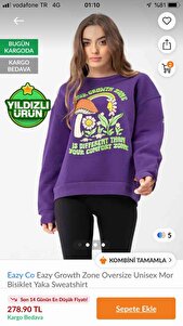 Eazy Growth Zone Oversize Unisex Mor Bisiklet Yaka Sweatshirt Eazy Growth Zone Oversize Unisex Mor Bisiklet Yaka Sweatshirt Eazy 7039 L