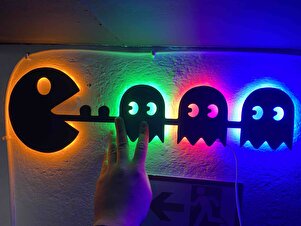 Pacman Led Işıklı Ahşap Tablo Pacman Led Işıklı Ahşap Tablo pacman12 55 x 29