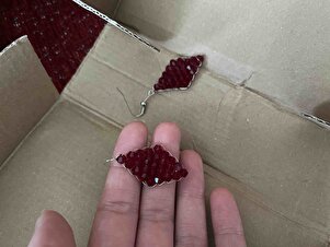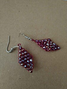 Tamamen El Yapımı Bordo Kristal Taşlı Küpe Tamamen El Yapımı Bordo Kristal Taşlı Küpe 0057 1,5 x 7