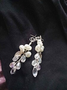 Tamamen El Yapımı Doğal Inci Taşlı Nişan, Gelin Küpesi Tamamen El Yapımı Doğal Inci Taşlı Nişan, Gelin Küpesi 0053 1,5 x 7