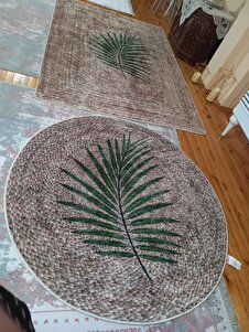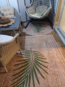 Hasır Jüt Görünümlü Yaprak Motif Lateks Kaymaz Taban Balkon ve Teras Halısı Hasır Jüt Görünümlü Yaprak Motif Lateks Kaymaz Taban Balkon ve Teras Halısı BYD-KOSECLOIS 160 x 230