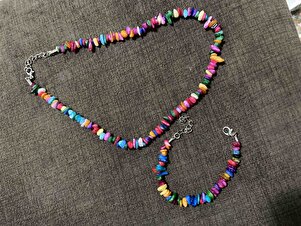 Renkli Sedef Doğal Kırıktaş Kolye Bileklik [set] Renkli Sedef Doğal Kırıktaş Kolye Bileklik [set] ARMİS-0001 تک سایز