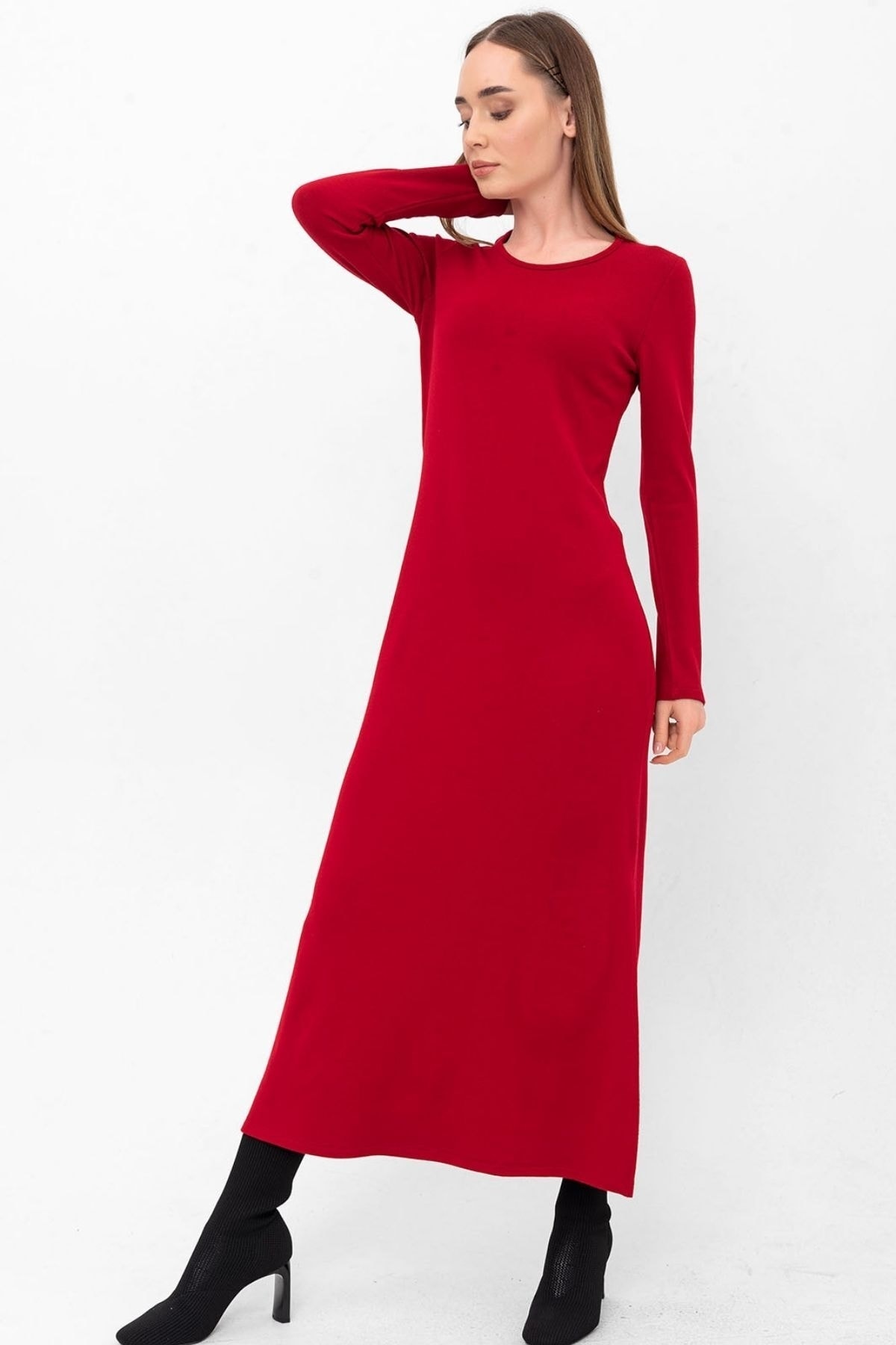 Bordo Geniş Dik Balıkçı Yaka Yırtmaç Detay Triko Elbise Bordo Geniş Dik Balıkçı Yaka Yırtmaç Detay Triko Elbise 21L7086 48