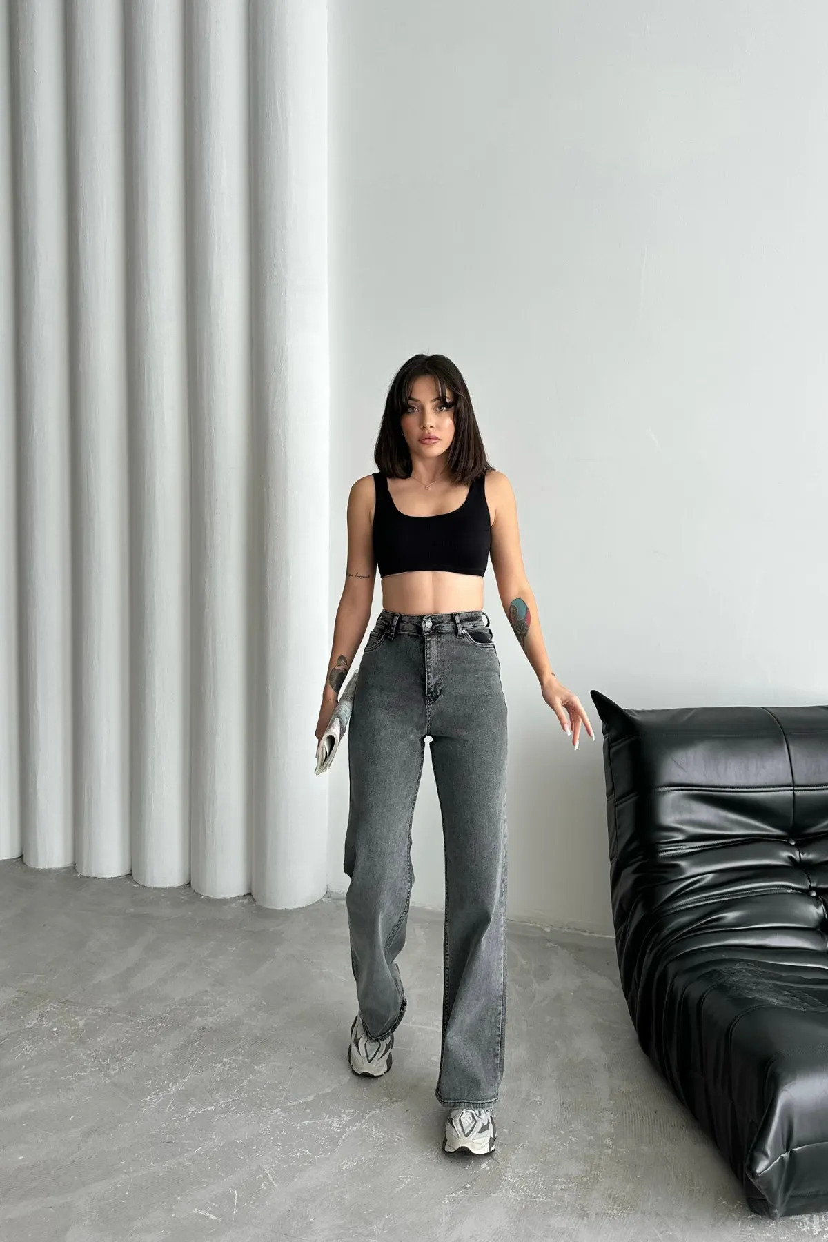 Kadın Esnek Bol Paça Palazzo Füme Kot Pantolon Kadın Esnek Bol Paça Palazzo Füme Kot Pantolon 5XRDN 31