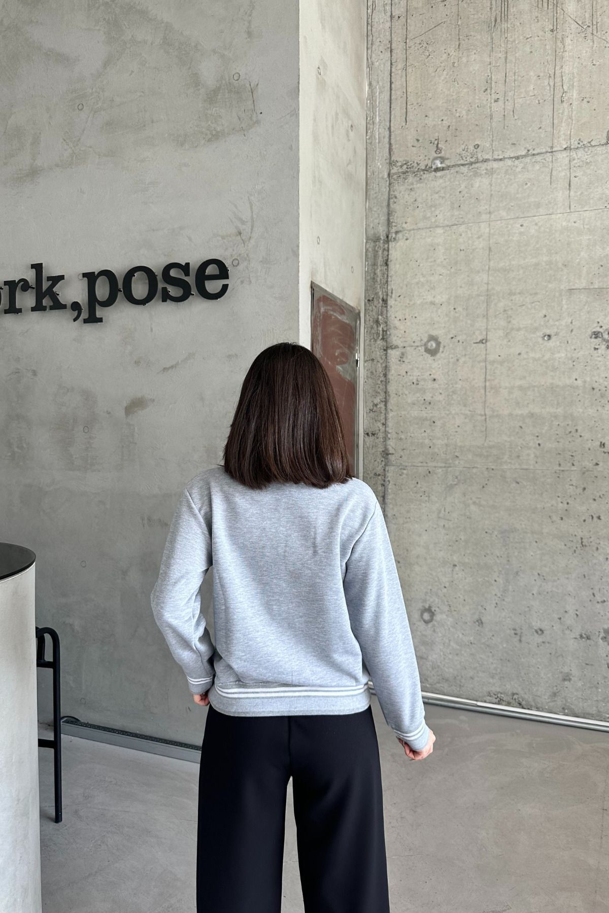Kadın Bisiklet Yaka Taşlı Relax Fit Gri Bol Sweat Kadın Bisiklet Yaka Taşlı Relax Fit Gri Bol Sweat 11XRDN L