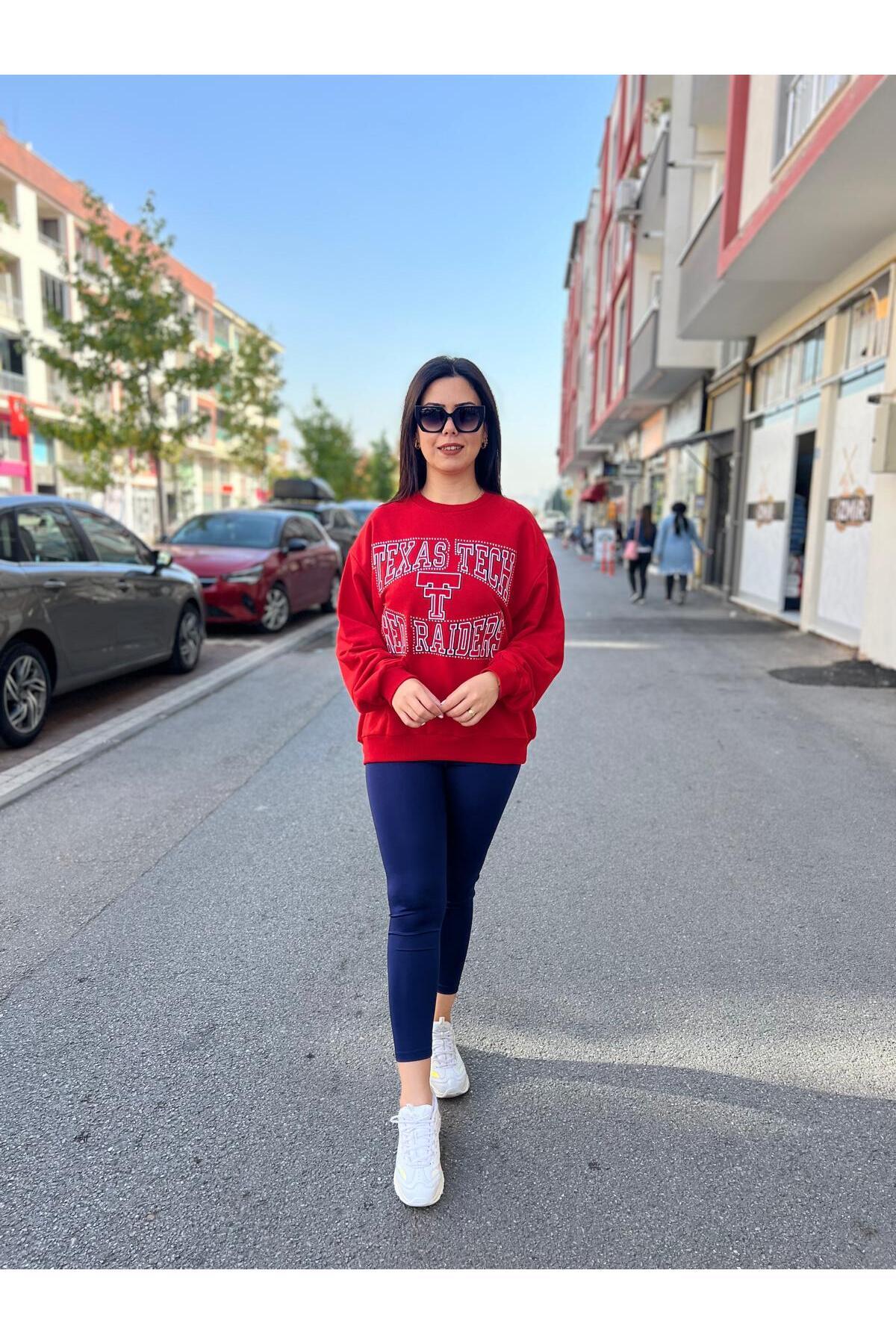 Kadın Bisiklet Yaka Taşlı Relax Fit Kırmızı Sweat Kadın Bisiklet Yaka Taşlı Relax Fit Kırmızı Sweat 11XRDN L