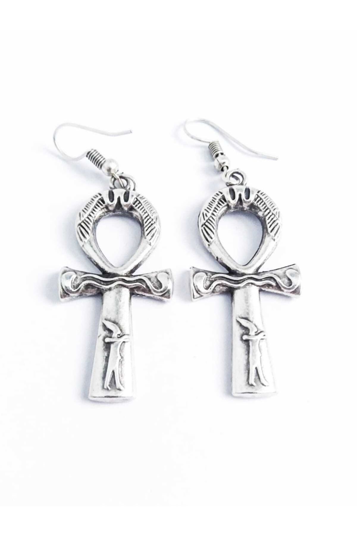 Ankh Antik Mısır Sembolü Beyaz Gümüş Küpe Ankh Antik Mısır Sembolü Beyaz Gümüş Küpe KP322 تک سایز