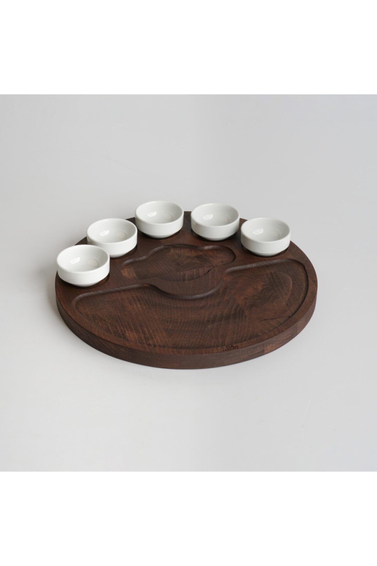 Ahşap Kişiye Özel Gürgen Ağacı Kahvaltı Sunum Tabağı – 5'li Melamin Sosluklu Ahşap Kişiye Özel Gürgen Ağacı Kahvaltı Sunum Tabağı – 5'li Melamin Sosluklu DVK 210066 تک سایز