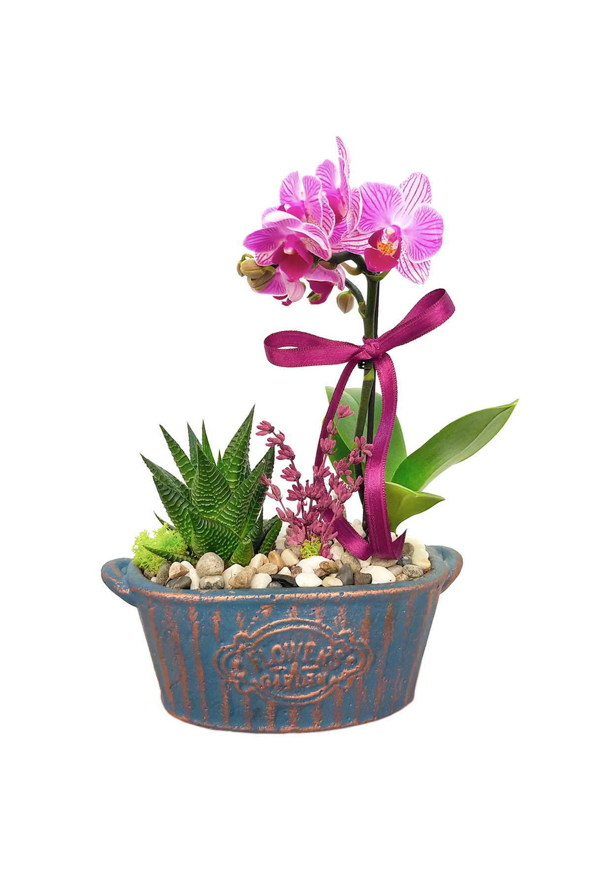 Ayaklı Tırtıklı Beton Saksıda Mini Mor Orkide & Hediye Dekoratif Canlı Bitki Çiçek 30 Cm Ayaklı Tırtıklı Beton Saksıda Mini Mor Orkide & Hediye Dekoratif Canlı Bitki Çiçek 30 Cm CS0534 تک سایز