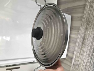Paslanmaz Çelik Kapaklı Saç Kavurma Tavası 35 Cm Paslanmaz Çelik Kapaklı Saç Kavurma Tavası 35 Cm ÜZÜMPASLANMAZ65 تک سایز