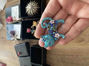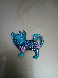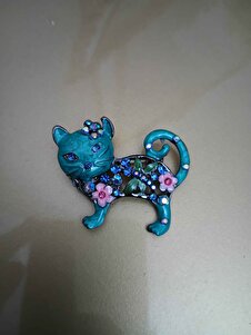 Taşlı Çiçekli Turkuaz Renk Kedi Broş Ve Kolye Ucu Taşlı Çiçekli Turkuaz Renk Kedi Broş Ve Kolye Ucu EP2428 تک سایز